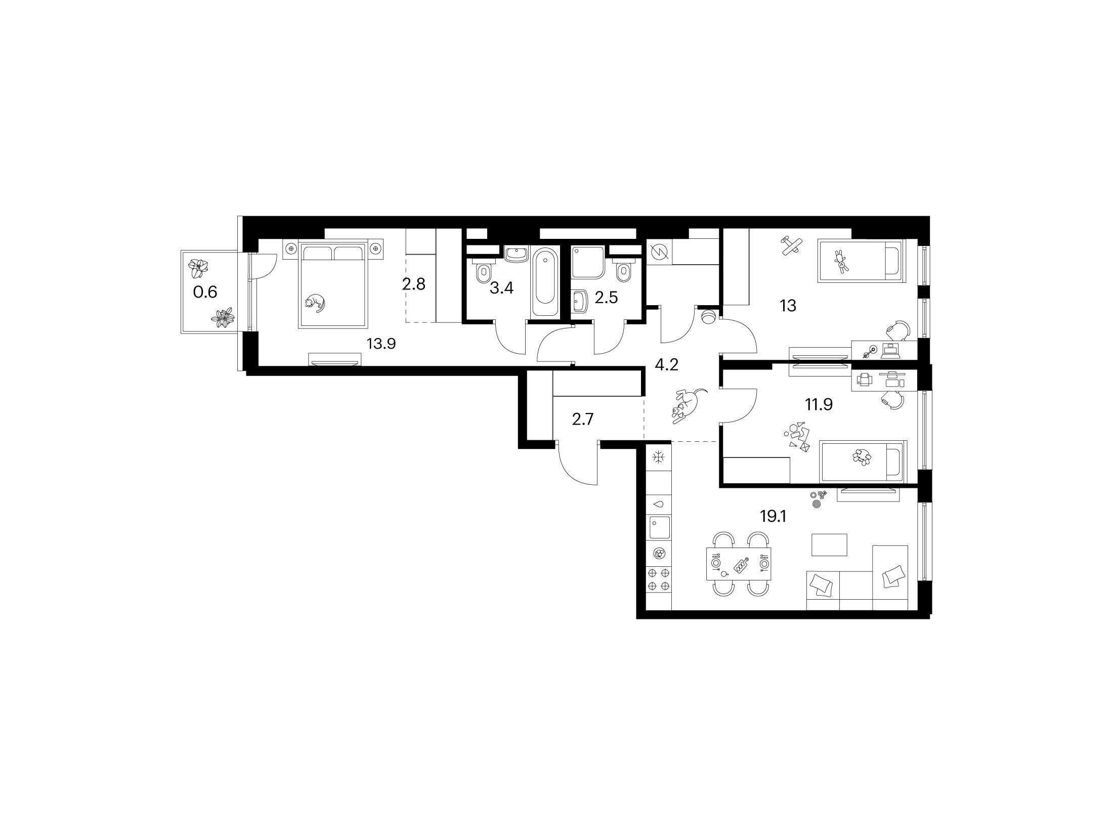 19.1 - 88.2 м²