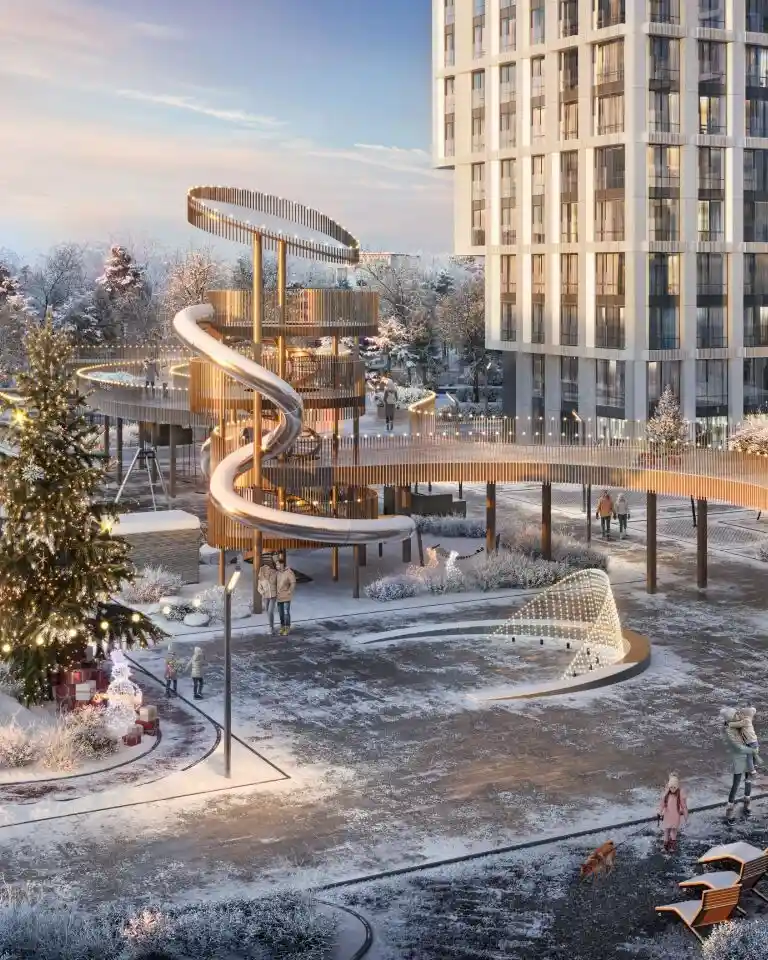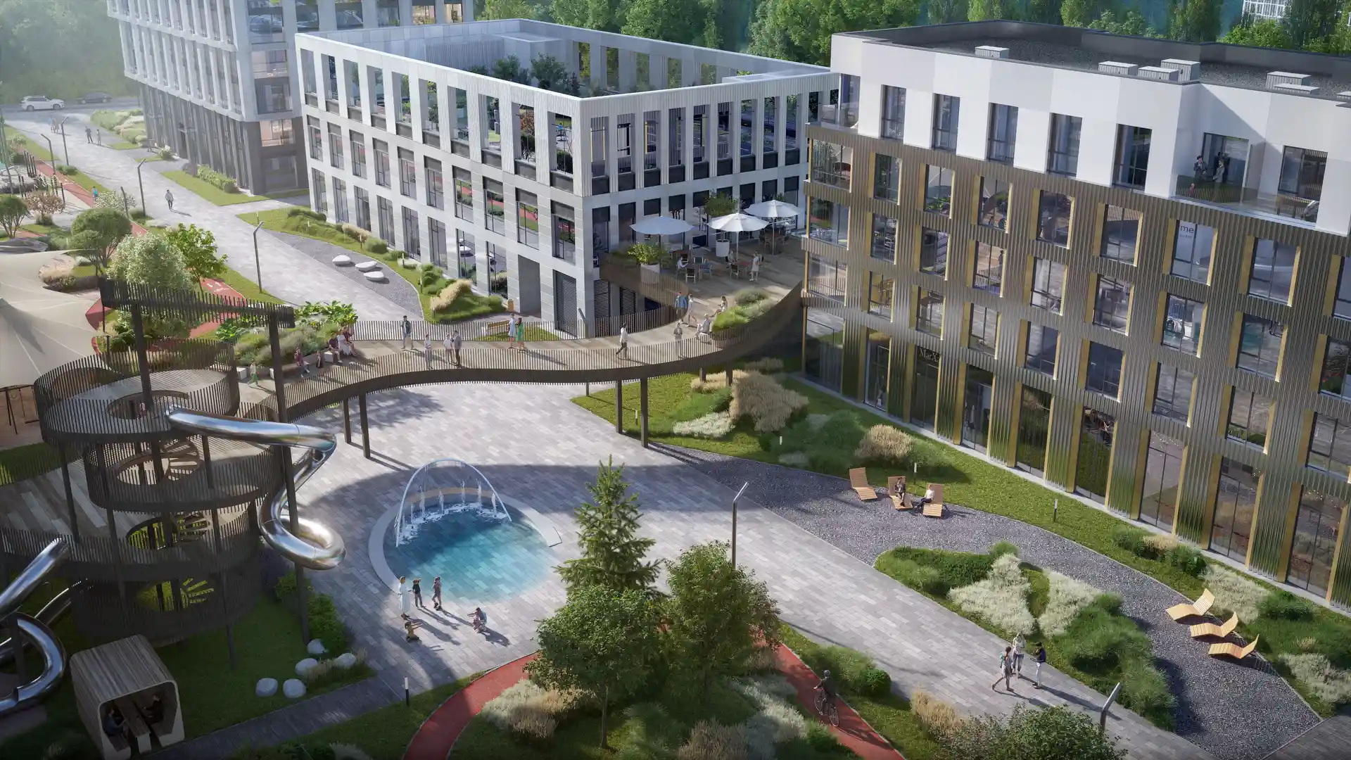 В проект входят жилые дома, подземные паркинги, школа и детский сад. Все квартиры в домах будут с отделкой — после заселения останется только расставить мебель. На первых этажах откроются магазины и кафе, а прямо под окнами появятся современные детские площадки и места для отдыха.