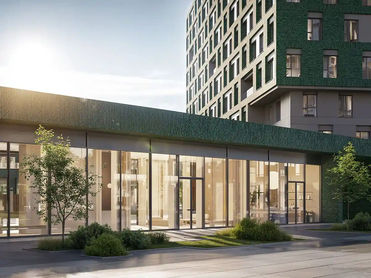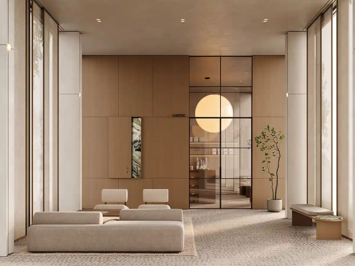 Инфраструктура комплекса продумана до мелочей. Стилобат объединяет корпуса в единое пространство с кафе, ресторанами и сервисными службами. Центральный вход ведёт через гранд‑лобби с высокими потолками (4,8 м), стойкой ресепшен и кофейней с интегрированной бизнес‑гостиной. В лобби каждого корпуса предусмотрены мягкая зона, комната матери и ребёнка, колясочные и лапомойки. В корпусе В расположено мультифункциональное family‑пространство с коворкинг‑зоной, детской игровой комнатой и интерактивным залом.