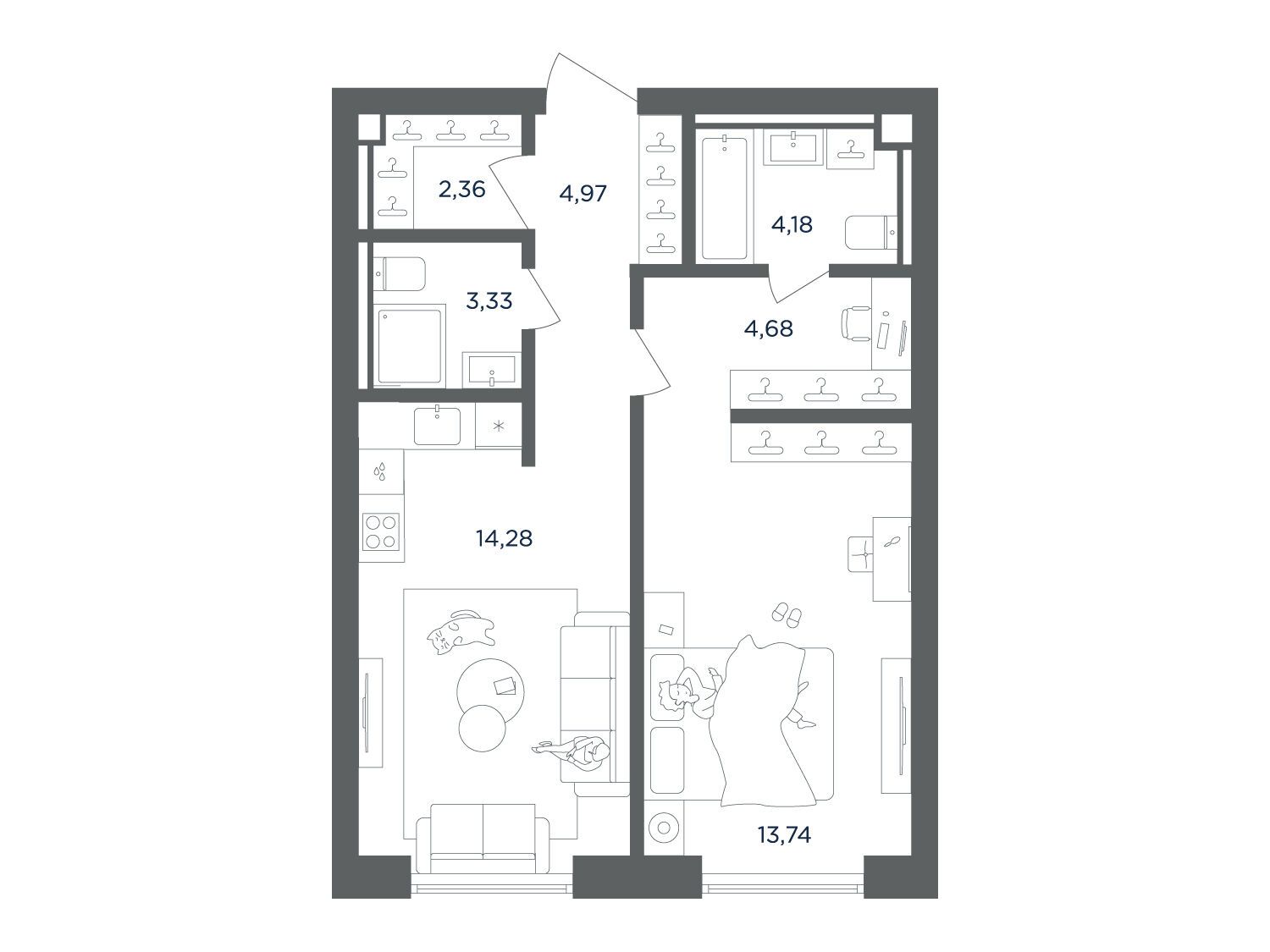 39.74 - 106.6 м²