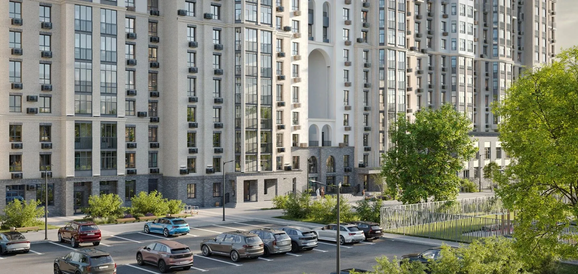 Парковка будет закрытой, расположенной под шлагбаумом. Машины жителей разместят на закрытой парковке, чужие автомобили не допускаются (для доступа нужно получить предварительное одобрение). Также предусмотрена гостевая парковка на удалённых участках.