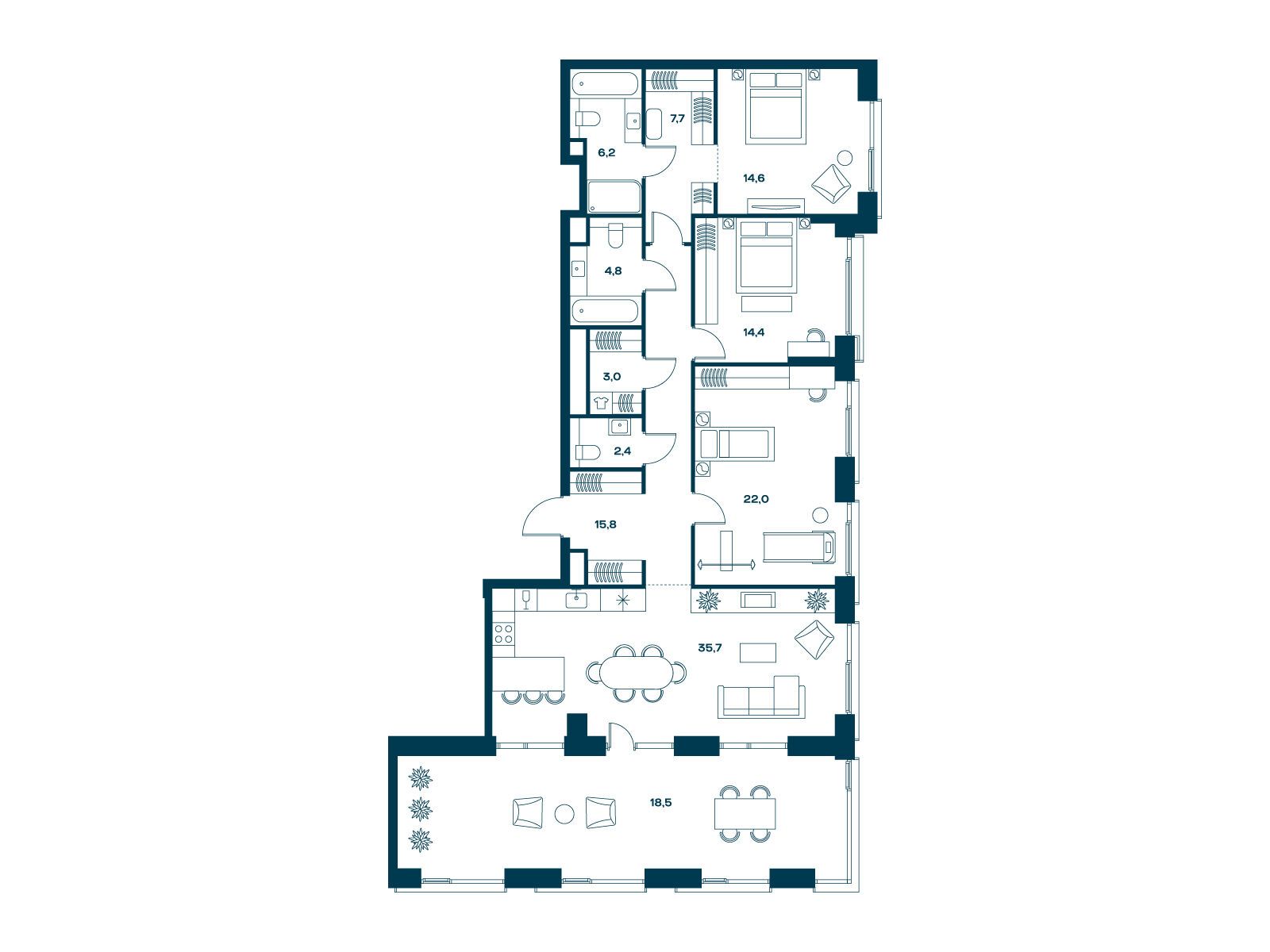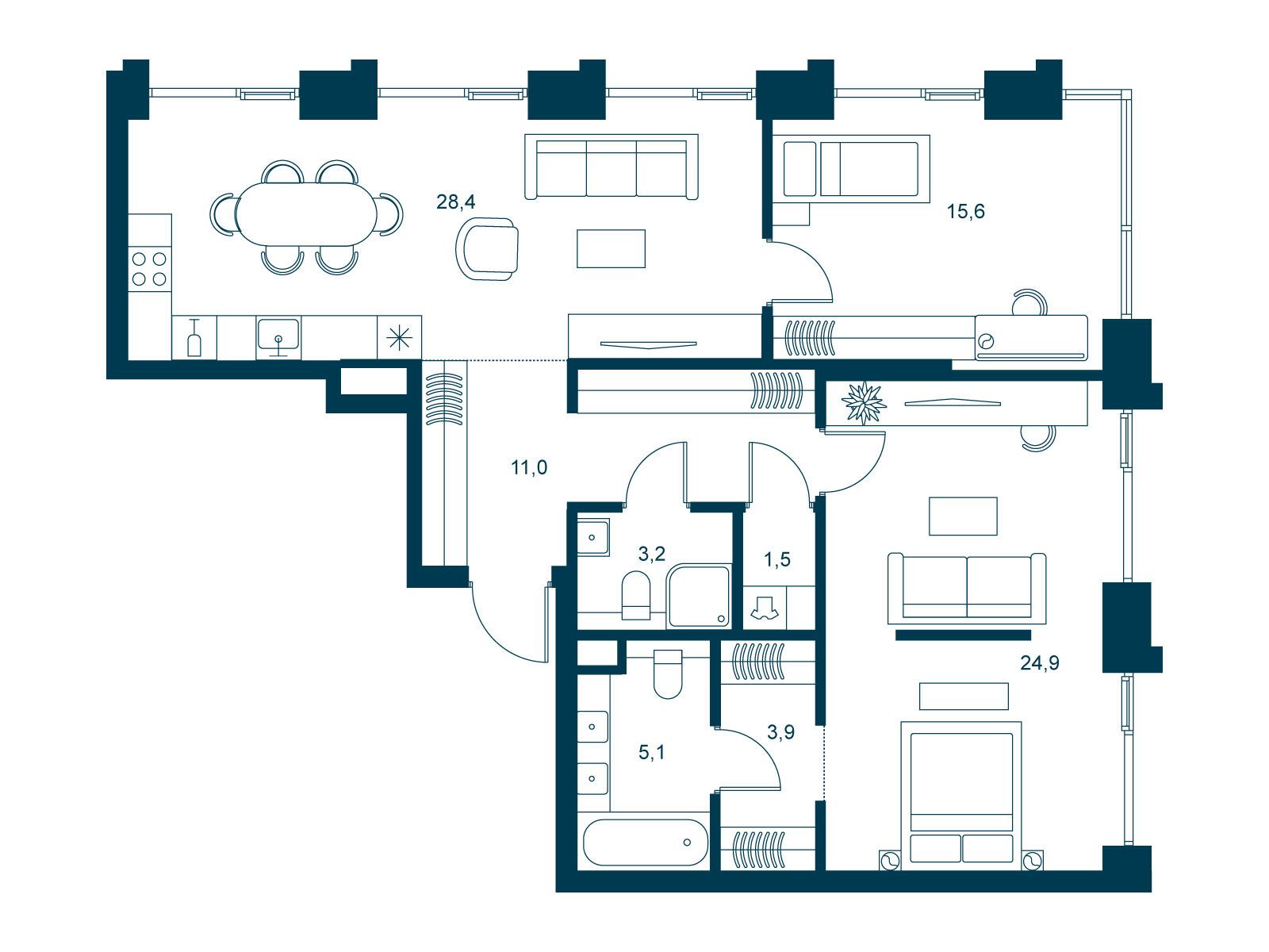 26.8 - 159.4 м²