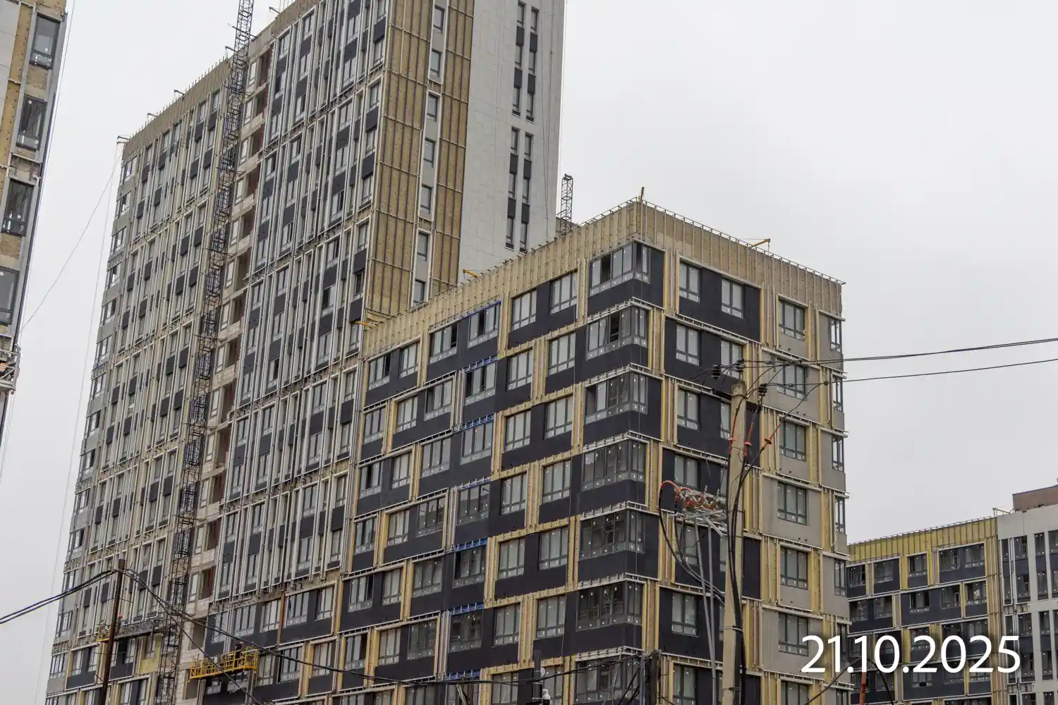 ЖК «Бунинские кварталы» застройщик возводит с применением монолитной технологии. Архитектура у новостройки сдержанная в современном стиле, фасады отделаны панелями контрастных цветов, предусмотрены корзины под кондиционеры.