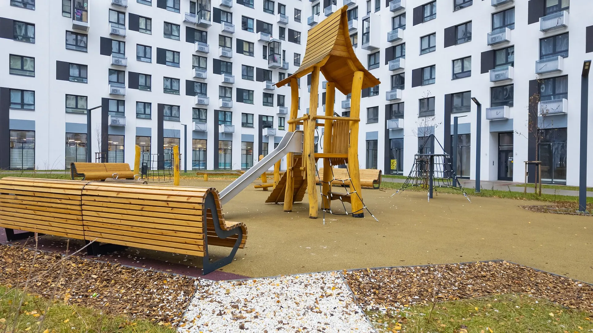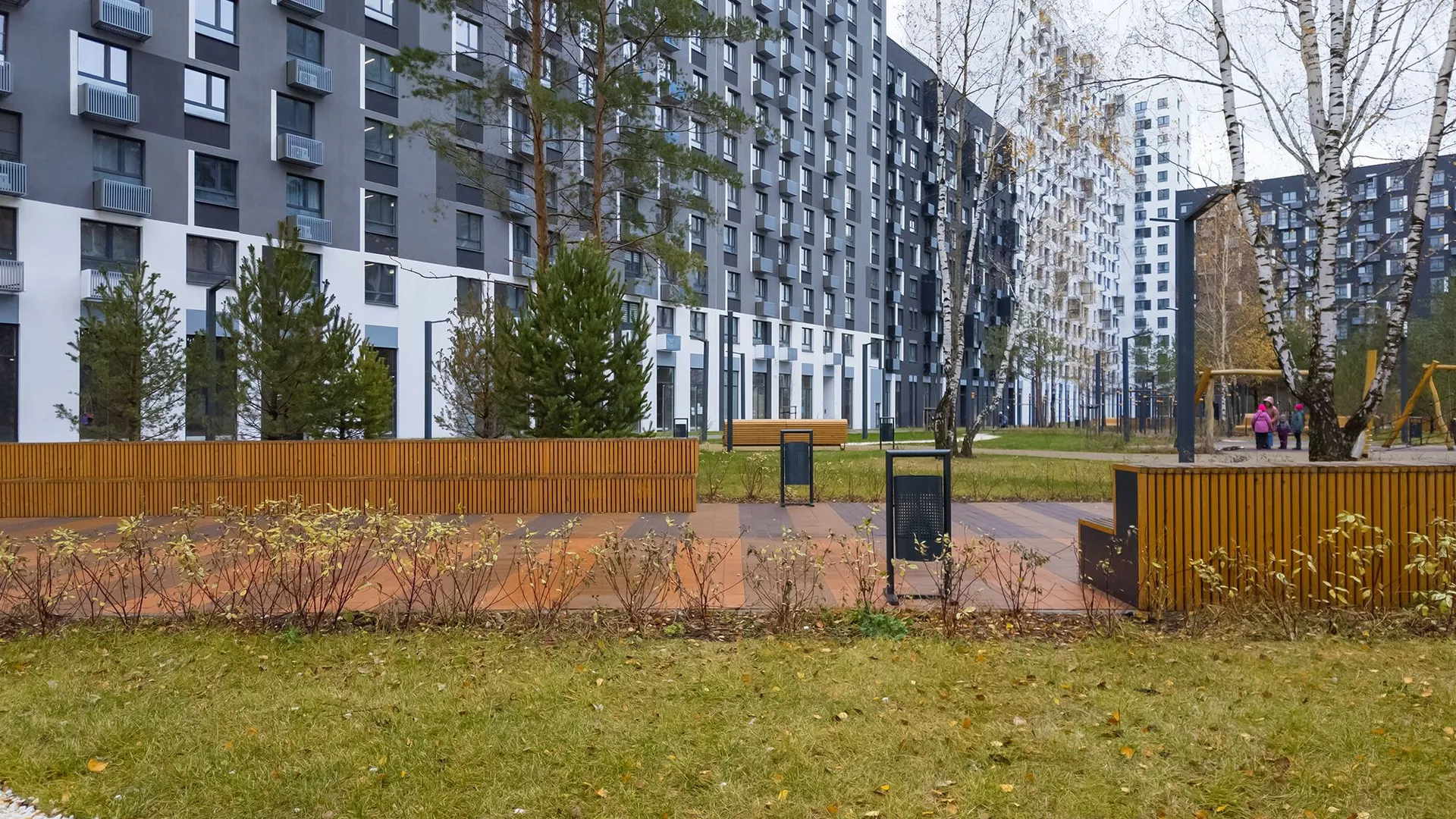 Внутренние дворы закрыты от машин: здесь размещаются детские игровые комплексы и уличные тренажеры и брусья. В центральной части ЖК предусмотрен прогулочный бульвар с дорожками для катания на велосипедах и самокатах, зонами для спорта, отдыха и детских игр. Также в ЖК «Мытищи парк» застройщик планирует создать экопарк с хвойными растениями, которые будут радовать жителей круглый год.
