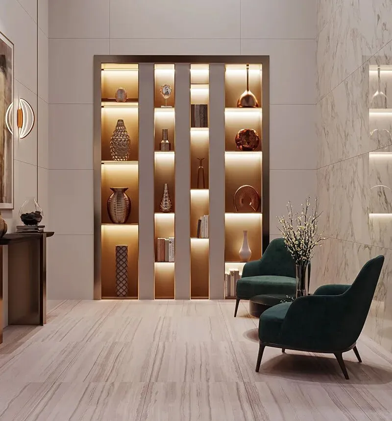 В лобби будет выполнена дизайнерская отделка. При входе предусмотрен гостевой санузел и душ для мытья лап домашним животным, а также комната для колясок и другого детского транспорта.