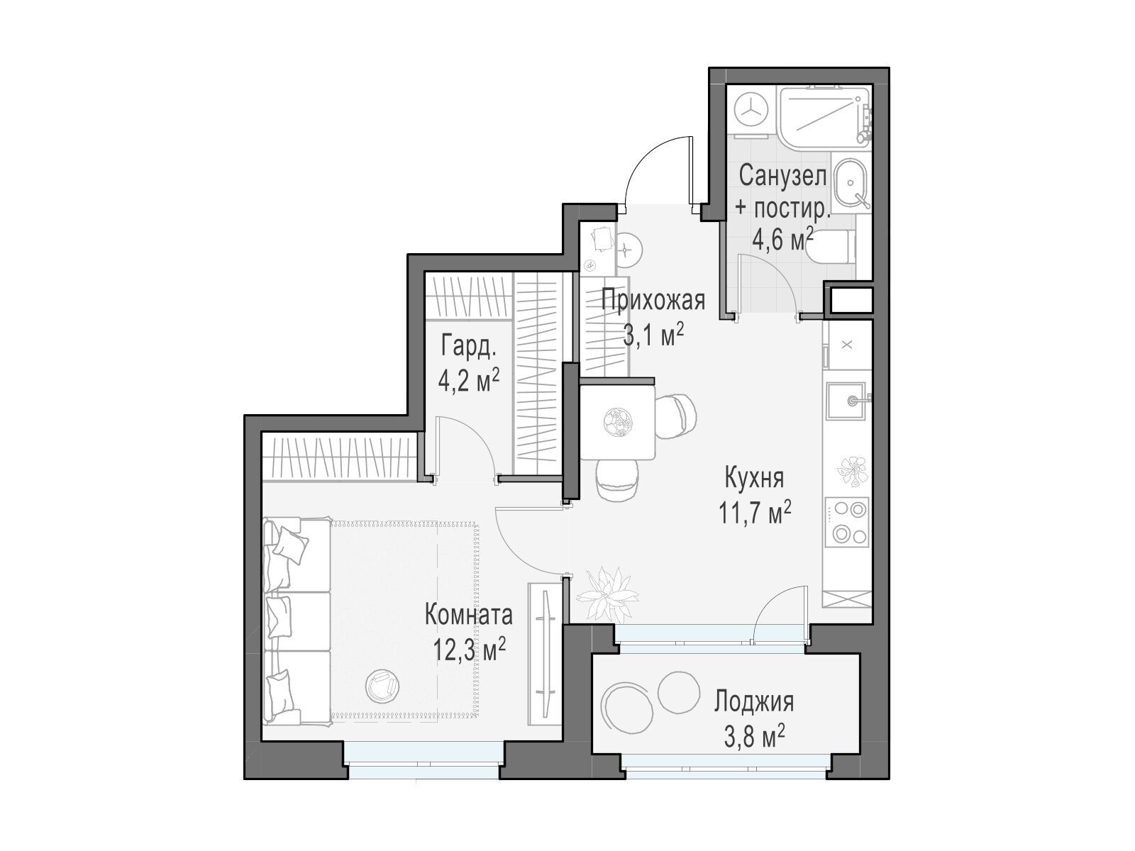 В квартале комфортные дома со светлыми и просторными подъездами, где созданы колясочные и келлеры. Доступен большой выбор планировочных решений, в том числе готовых квартир.