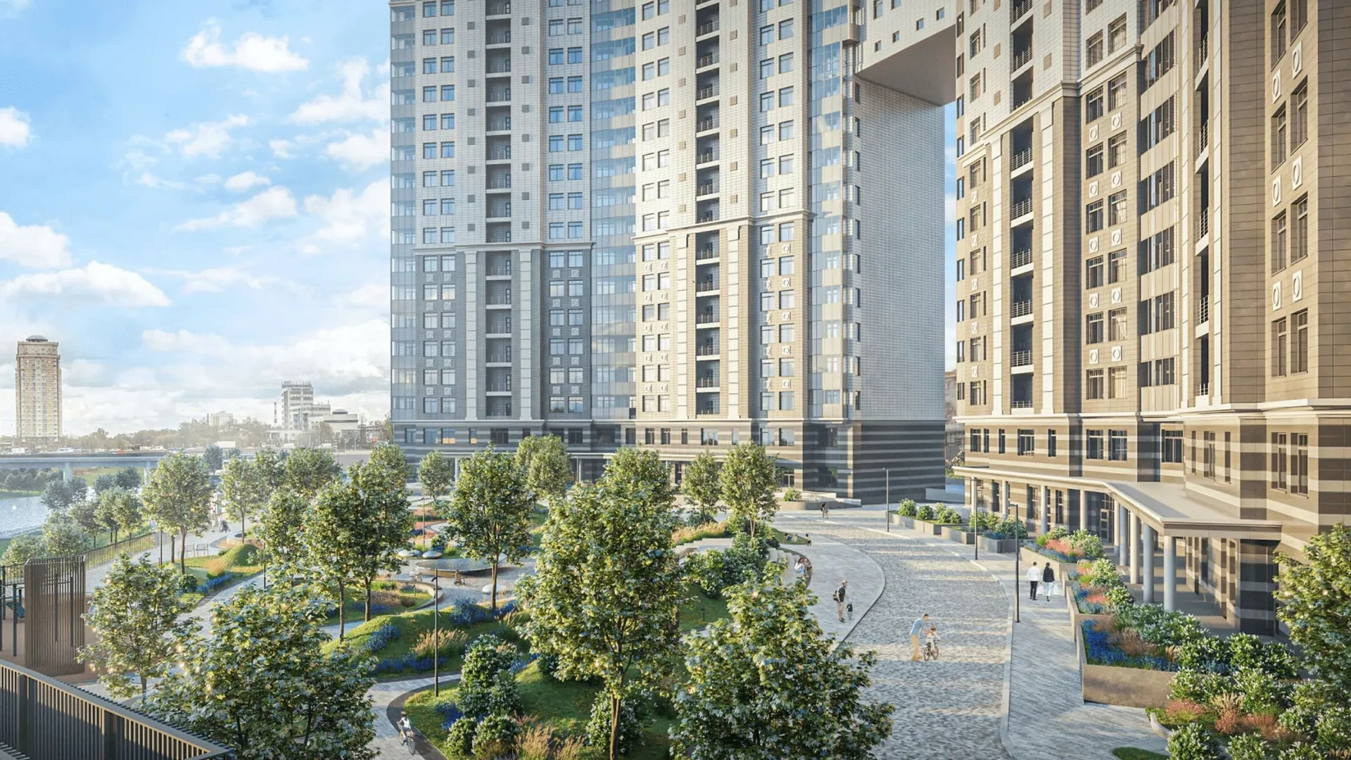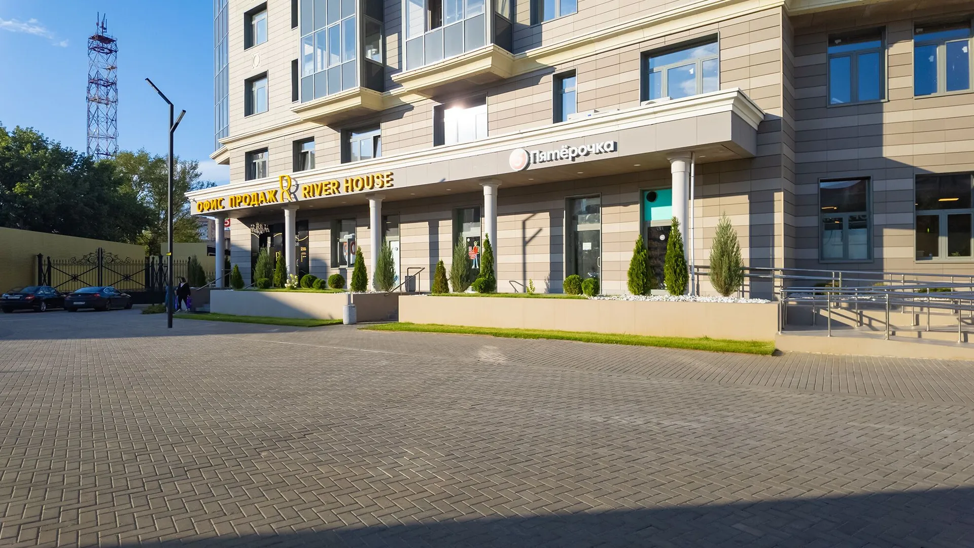 Окруженная зелеными насаждениями, территория жилого комплекса «River Нouse» полностью закрыта и свободна от автомобилей, что обеспечивает спокойствие и безопасность жителям.