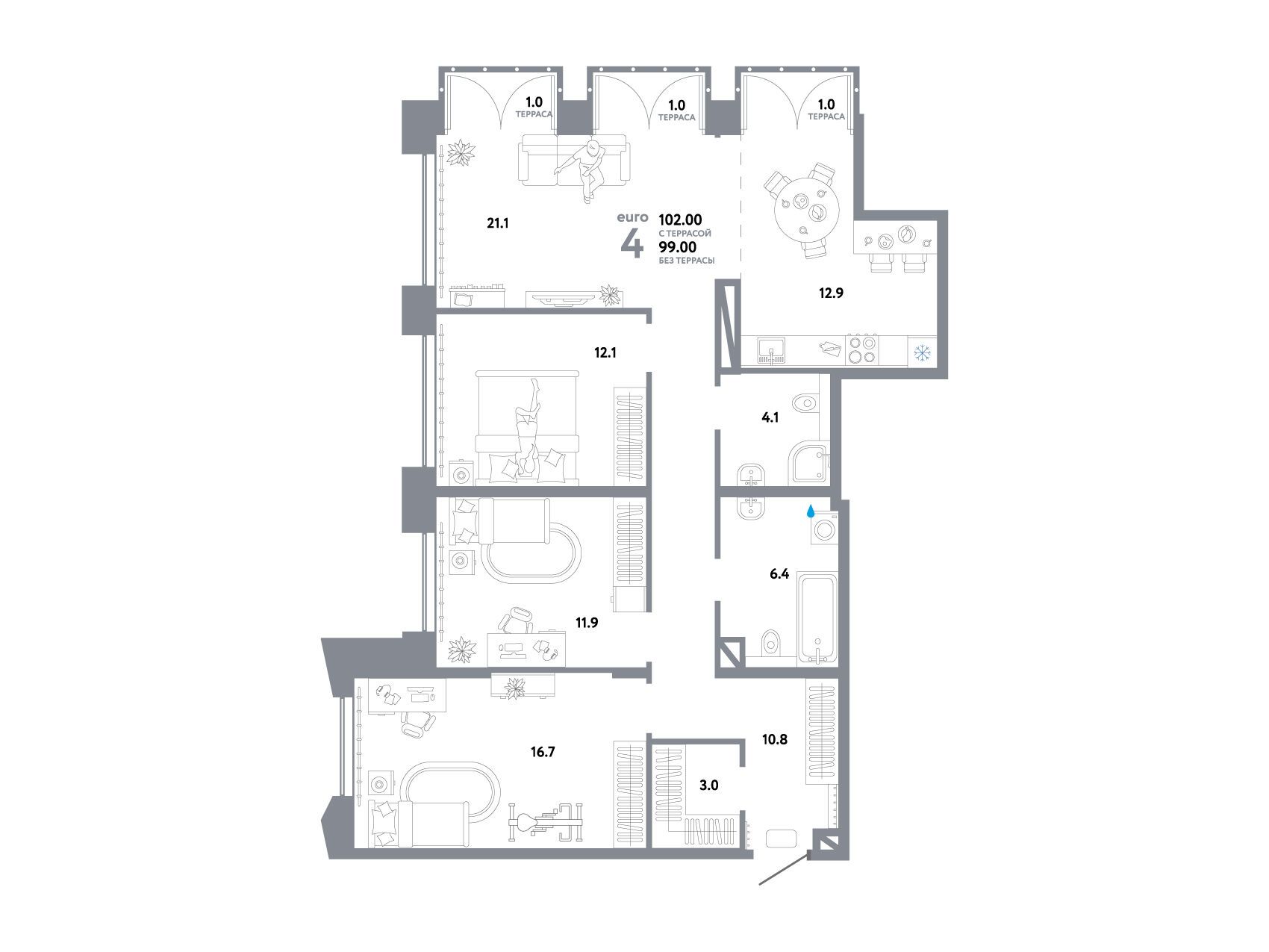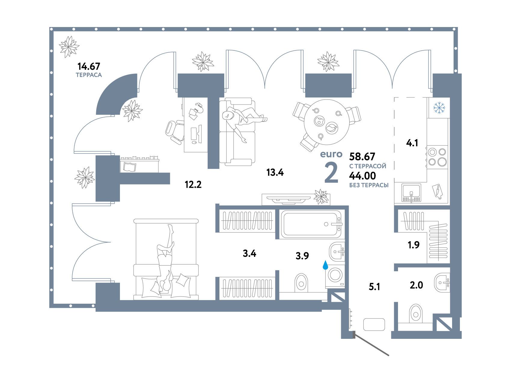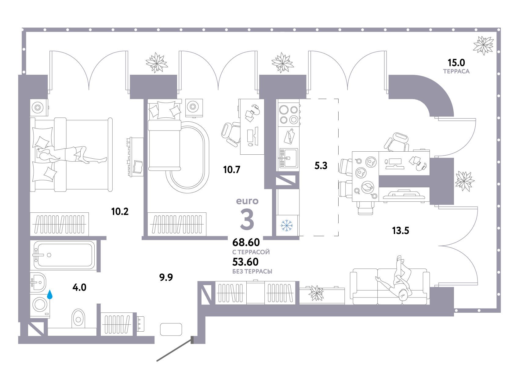 В комплексе представлено 1241 квартира — от студий до пентхаусов. Их площадь варьируется от 19,9 до 151,7 квадратных метров. Пентхаусы имеют панорамные виды на парки, террасы для отдыха или окна в гардеробных комнатах. Все квартиры предлагаются с отделкой white box, а застройщик предлагает три стиля дизайнерского ремонта «под ключ».