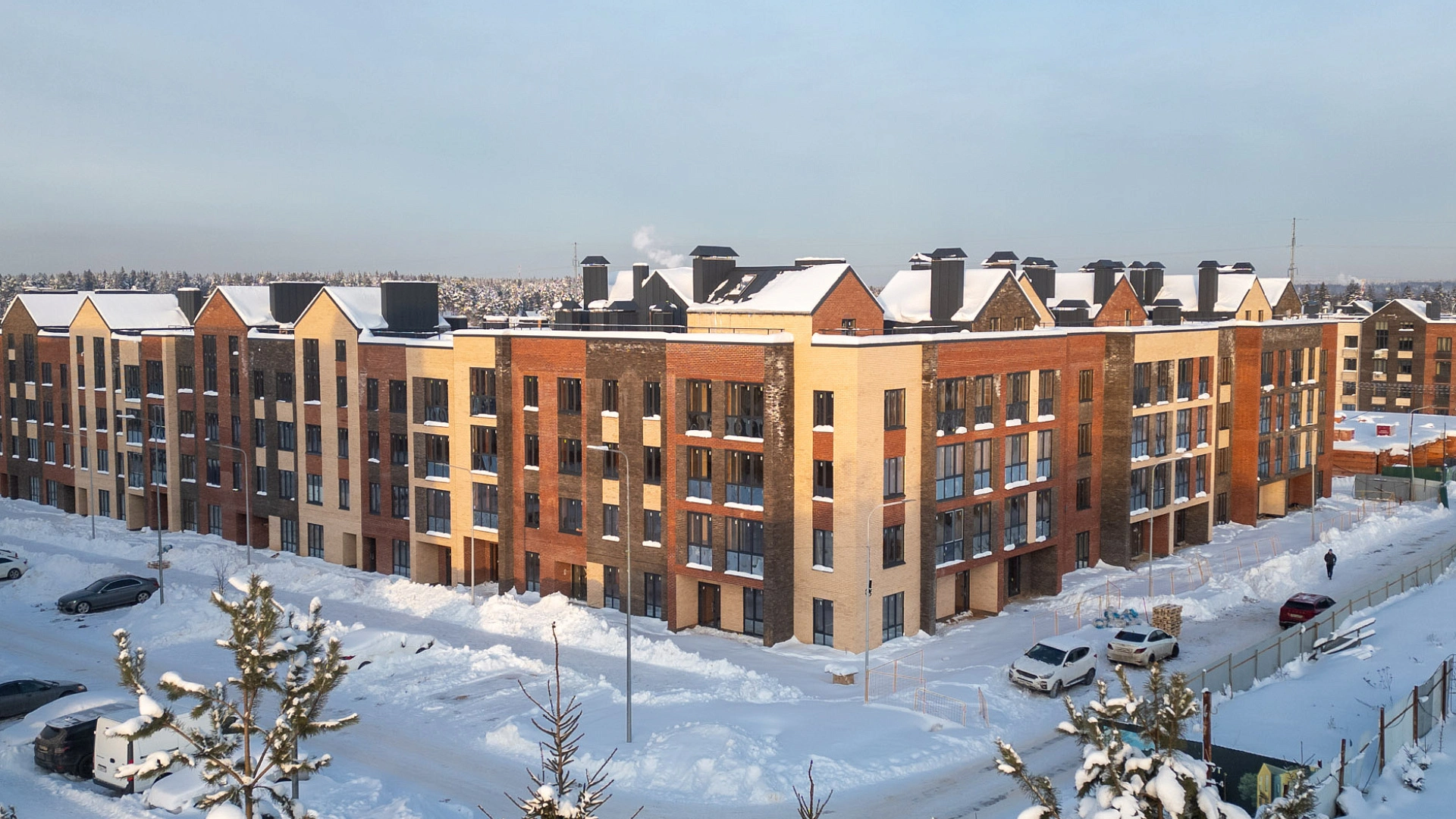 Красивый фасад и цветовая гамма у дома. Красивые окна, вид из окна тоже будет потрясным. Отличный вариант для тех, кто устал от городской суеты и хочет жить в тишине и спокойствии. Очень много зелени, парков, лесов. Неплохая транспортная развязка, для детей хорошая площадка. Здорово что есть много чего для детей, не нужно будет ехать куда-либо.