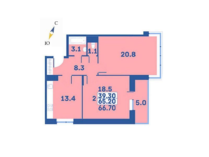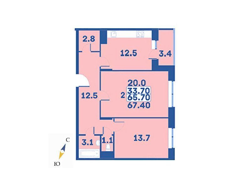 2-комнатная квартира, 67.40 м², 4 из 9 эт.