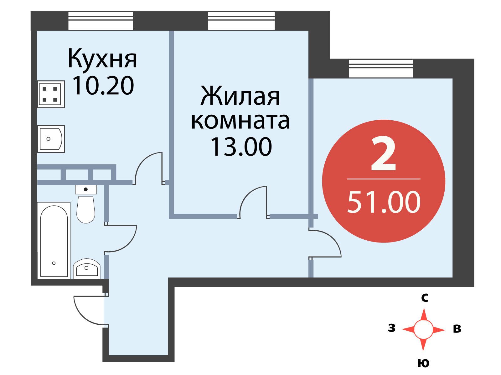 2-комнатная, 63.00 м²