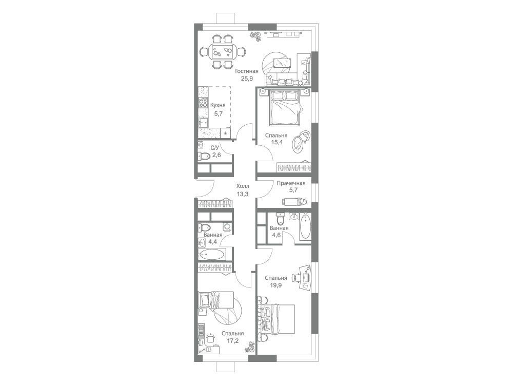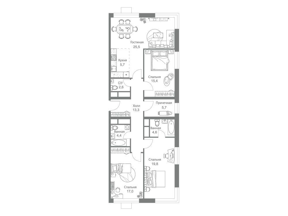 4-комнатная квартира, 114.70 м², 14 из 19 эт.