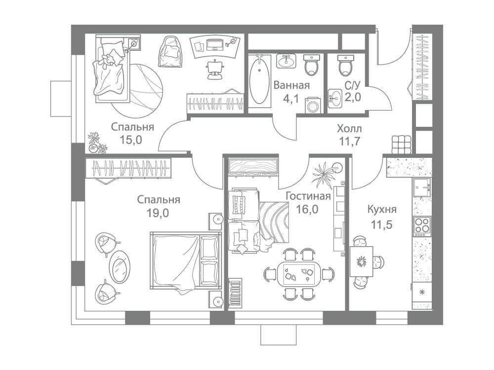 3-комнатная квартира, 79.20 м², 1 из 19 эт.