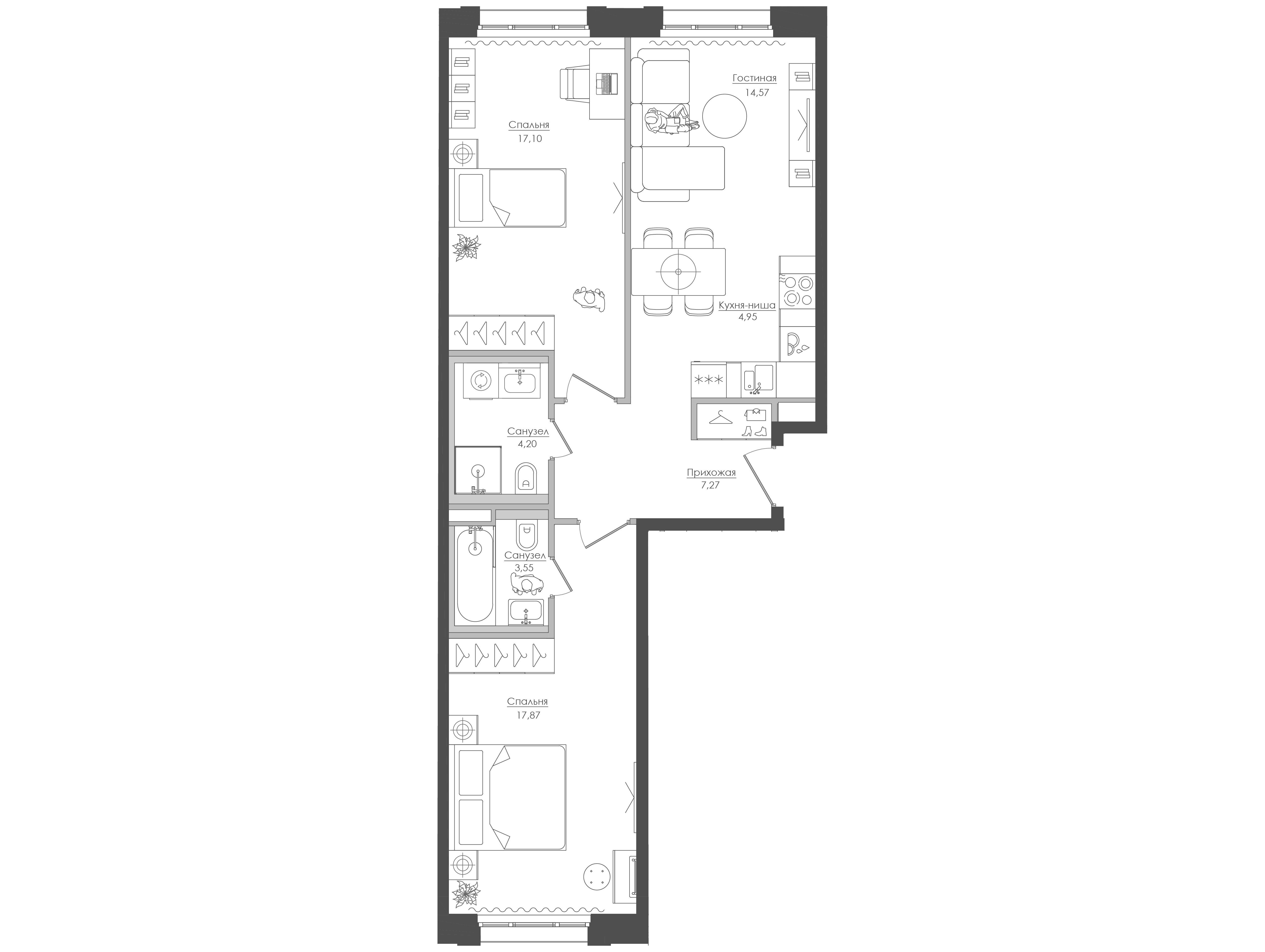 2-комнатная, 70.02 м²