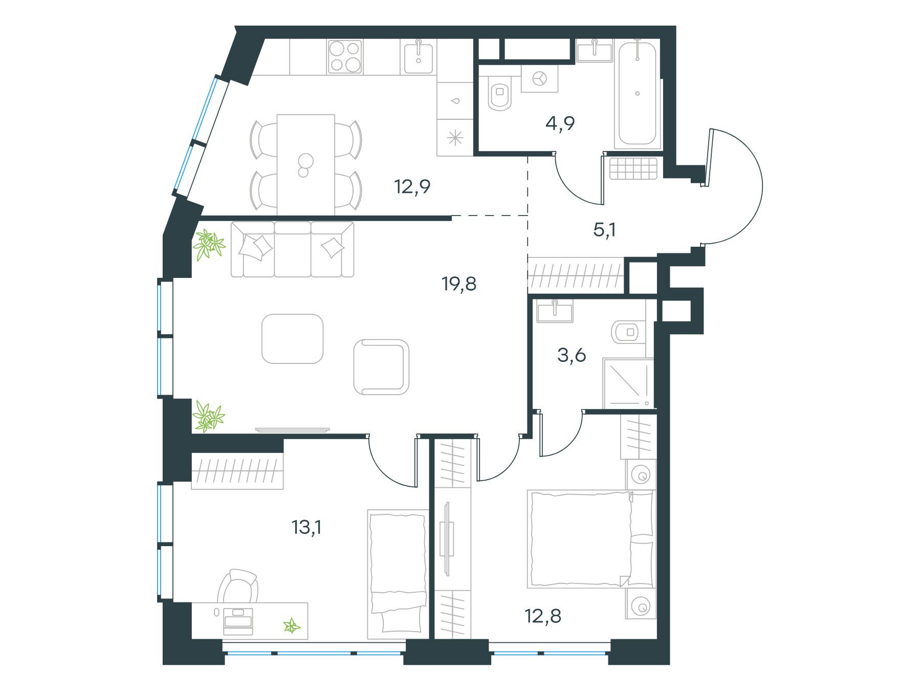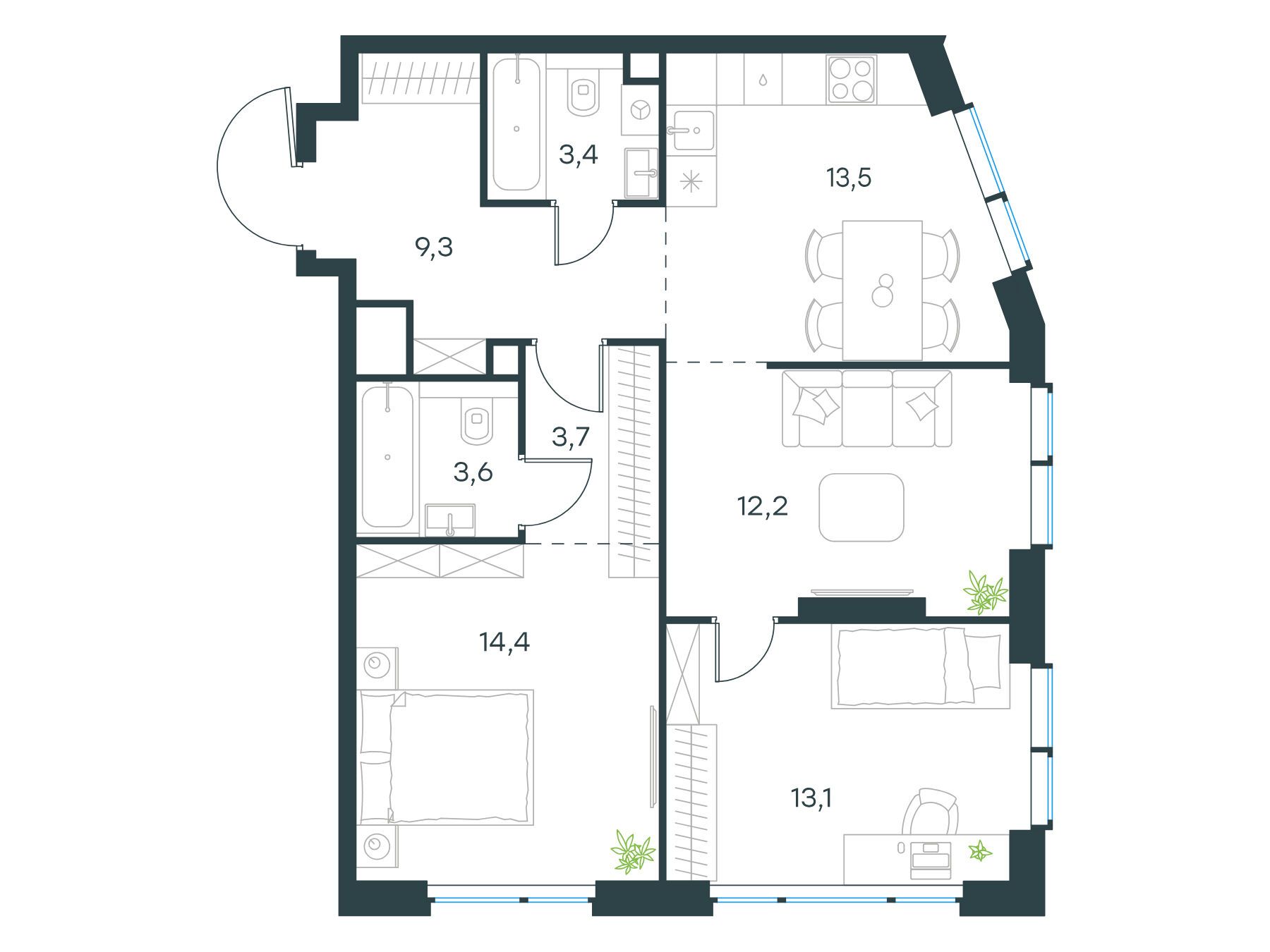 3-комнатная квартира, 56.00 м², 37 из 48 эт.
