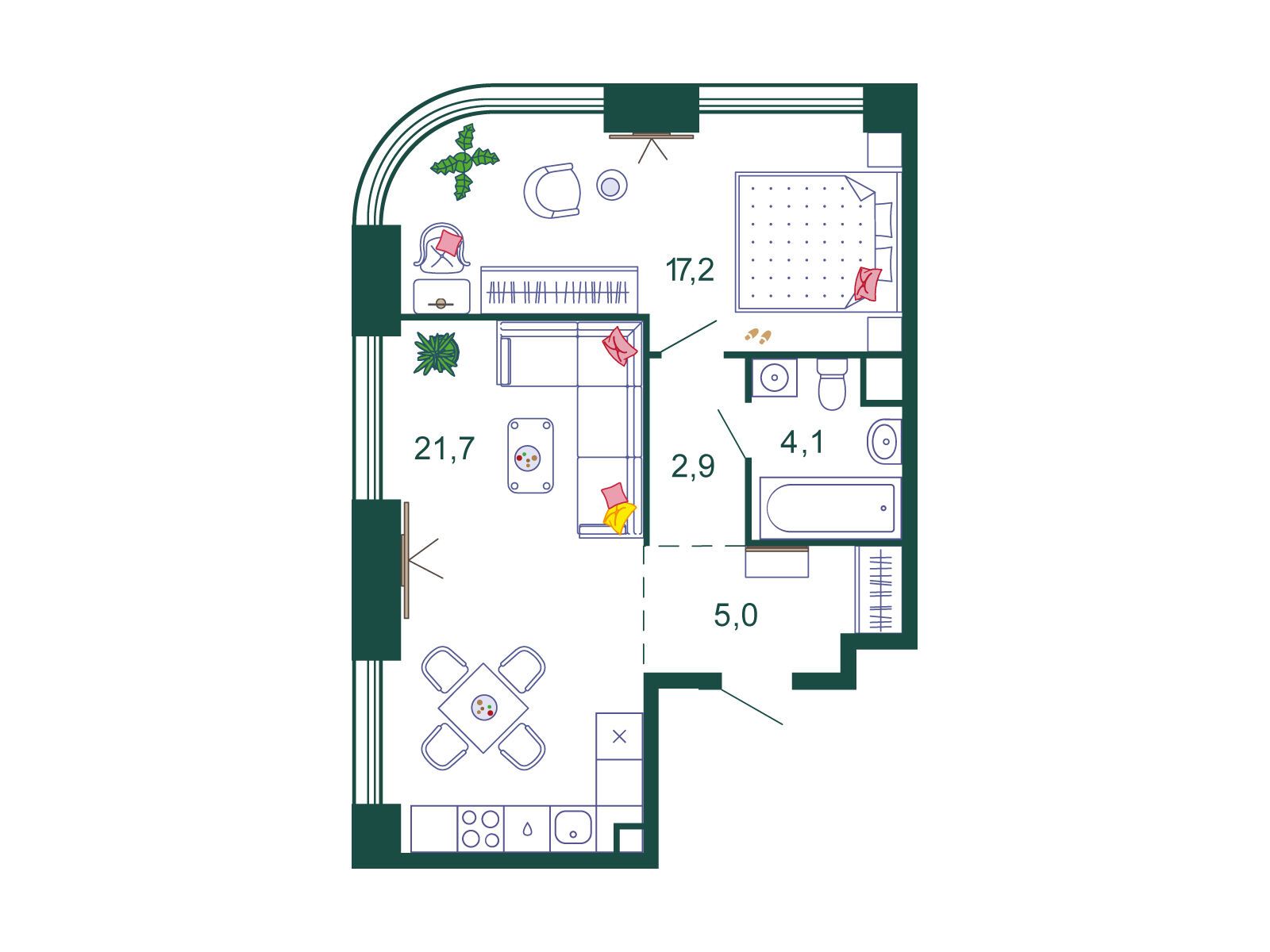 1-комнатная, 59.70 м²