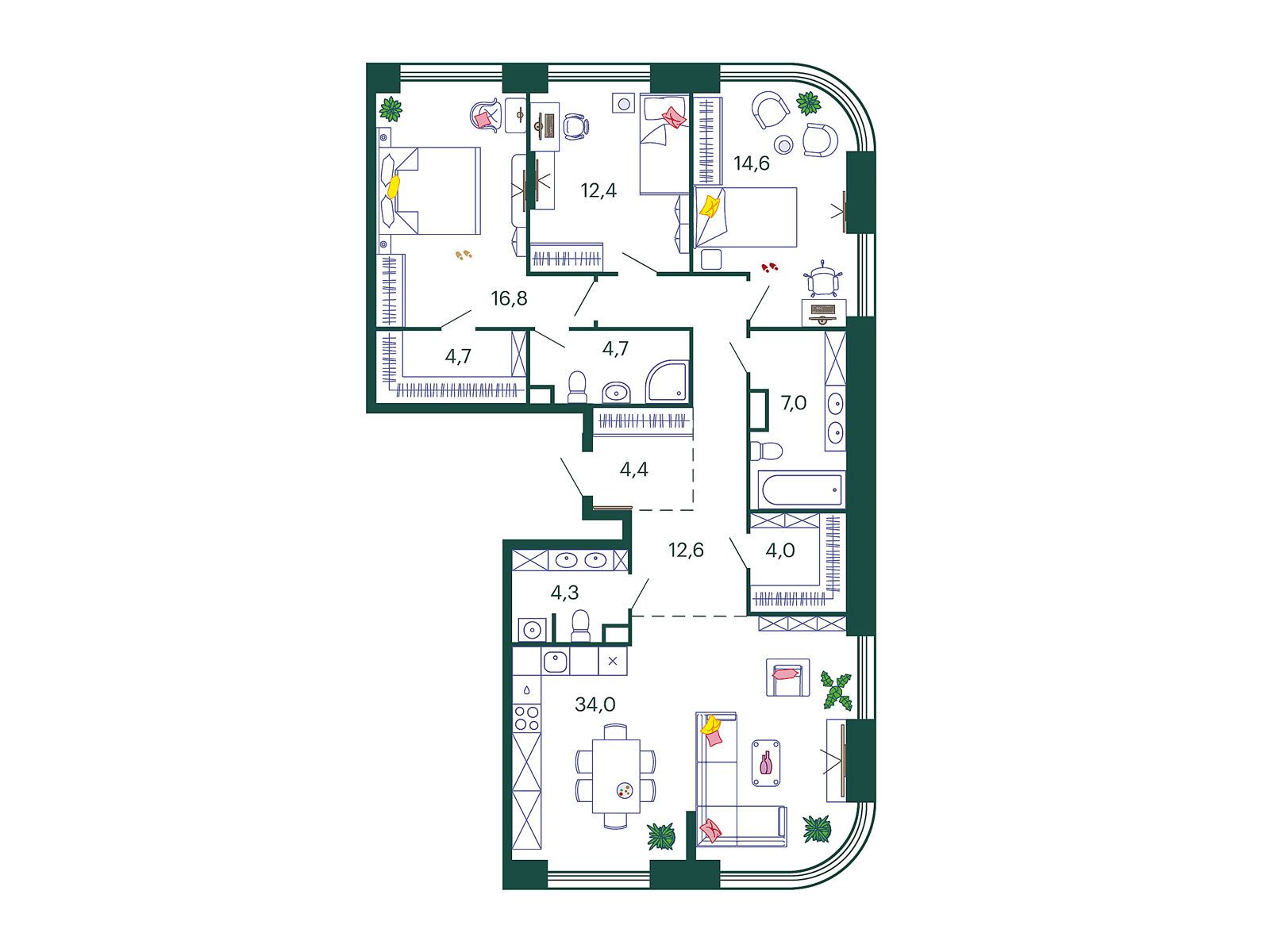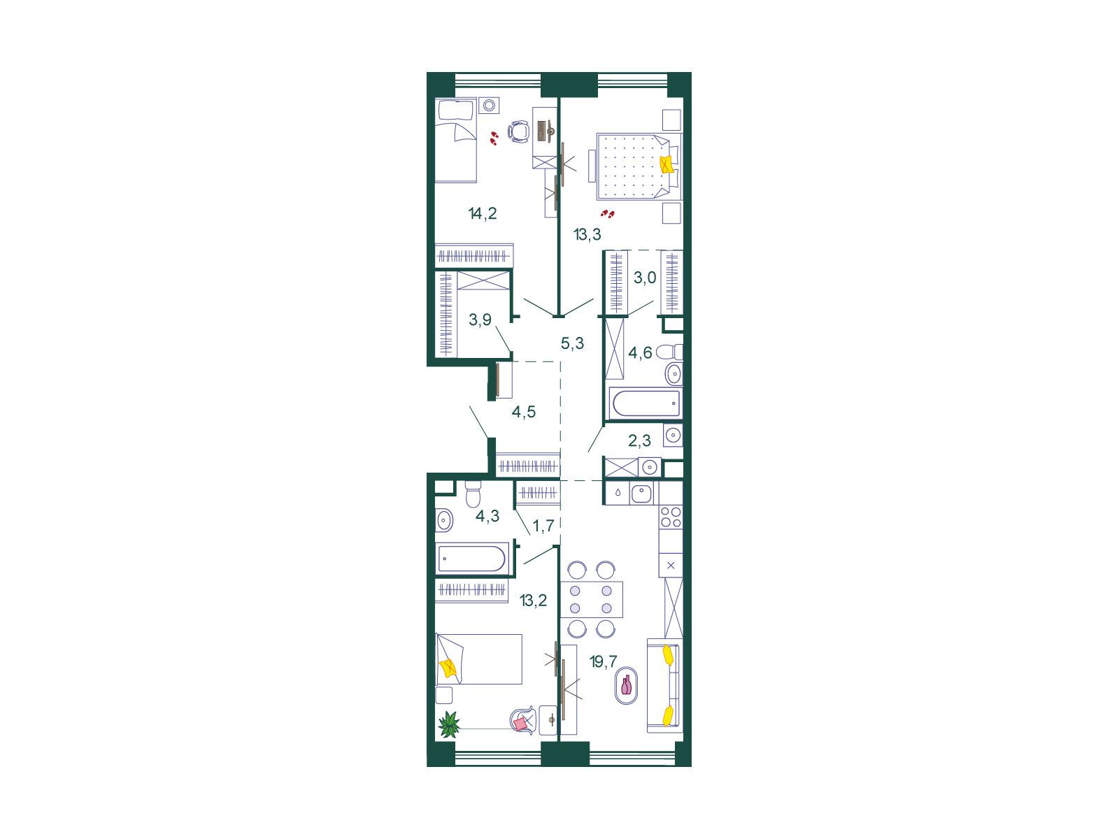 3-комнатная, 93.00 м²