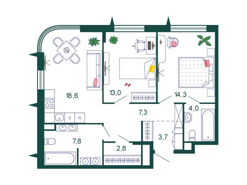 2-комнатная квартира, 77.50 м², 2 из 17 эт.