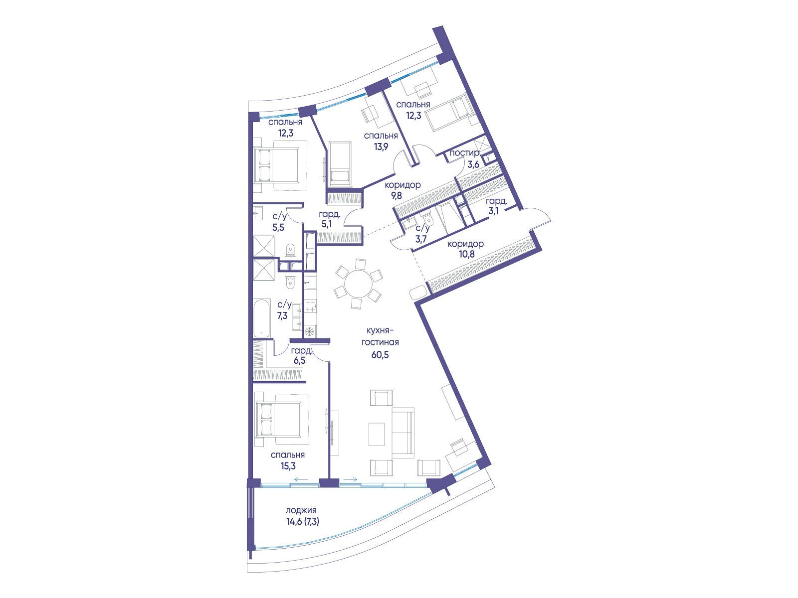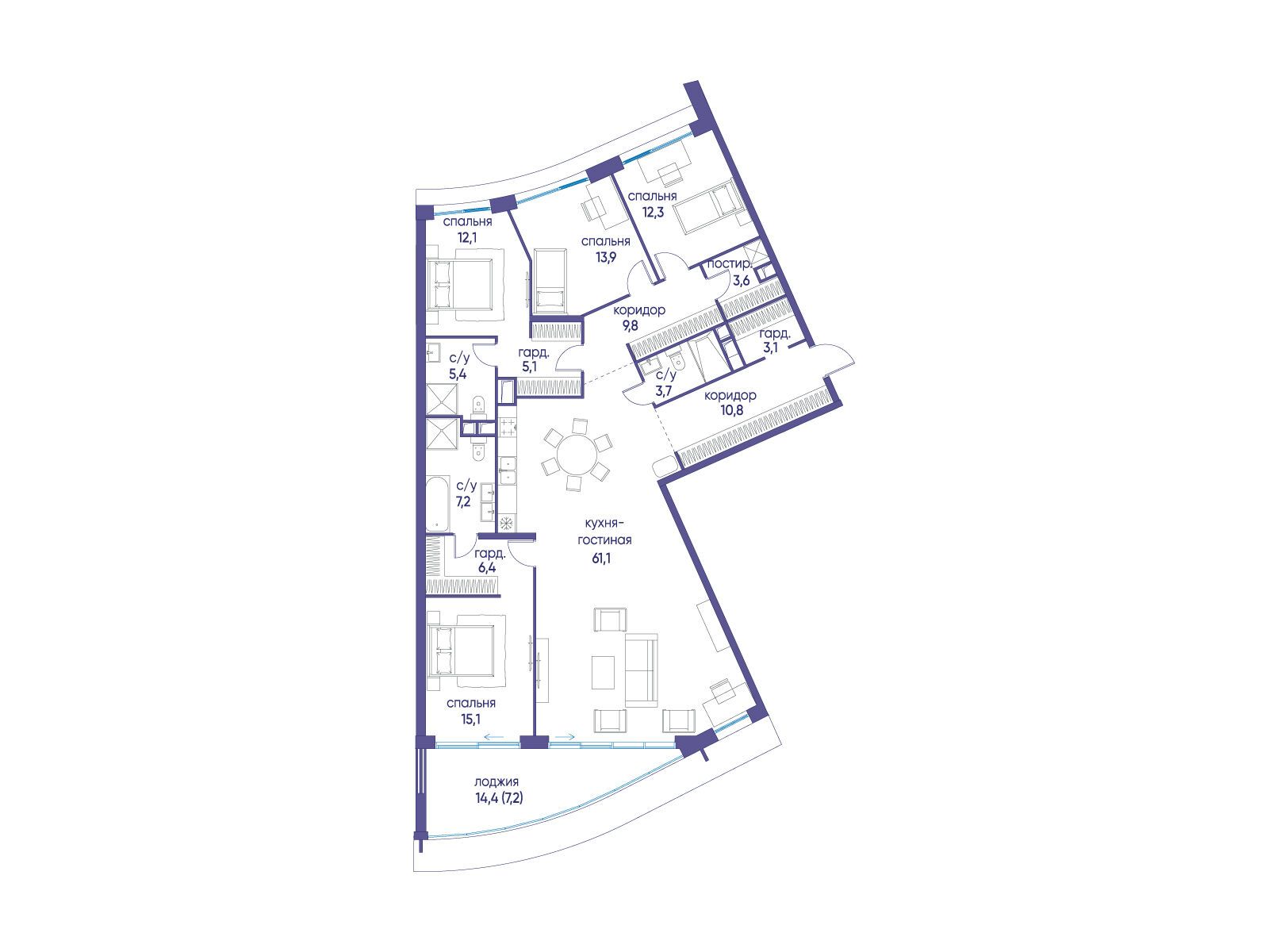 5-комнатная квартира, 172.70 м², 4 из 19 эт.