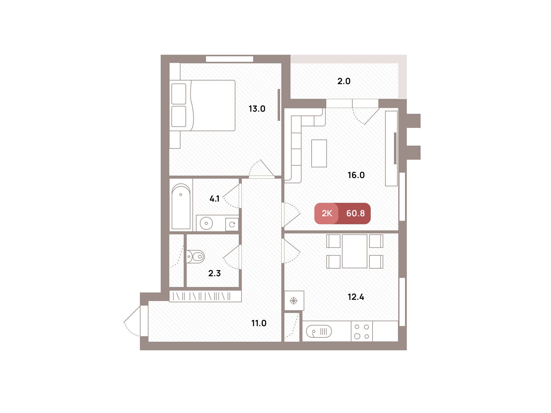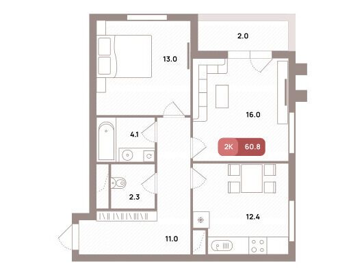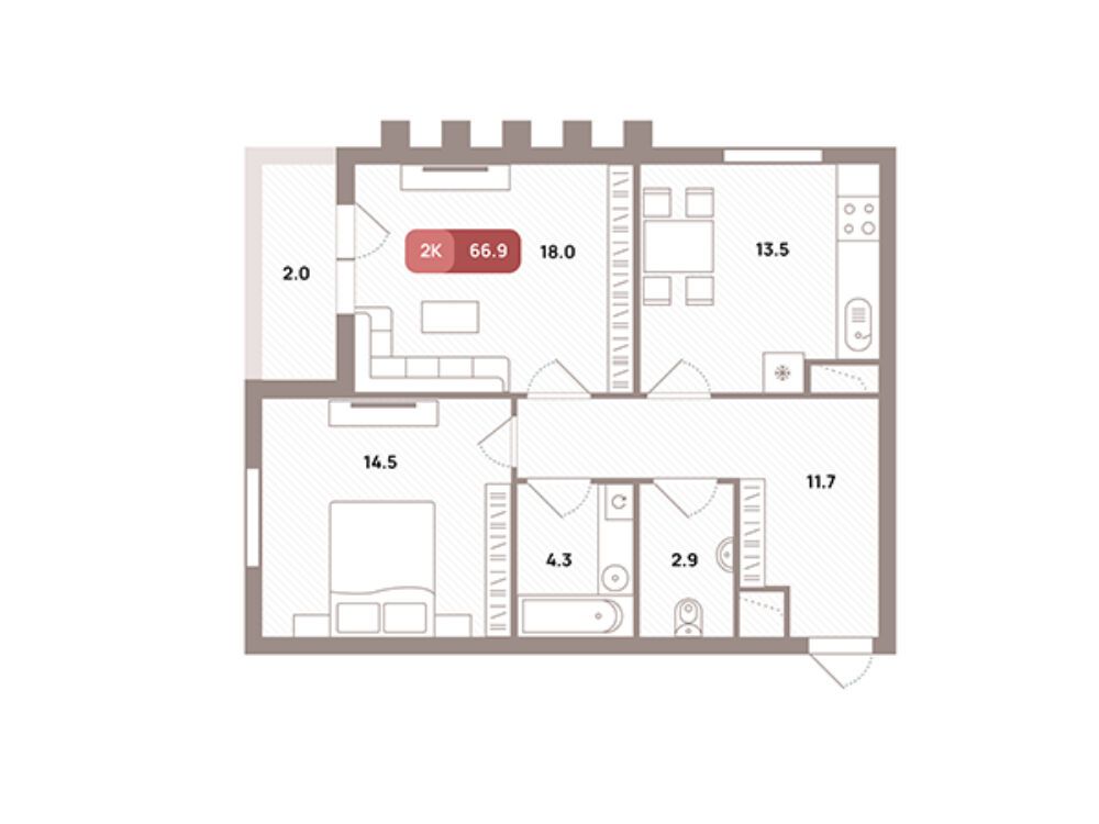 2-комнатная квартира, 66.90 м², 25 из 32 эт.