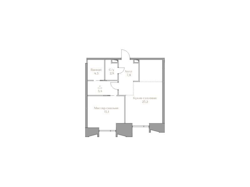 1-комнатная, 49.80 м²