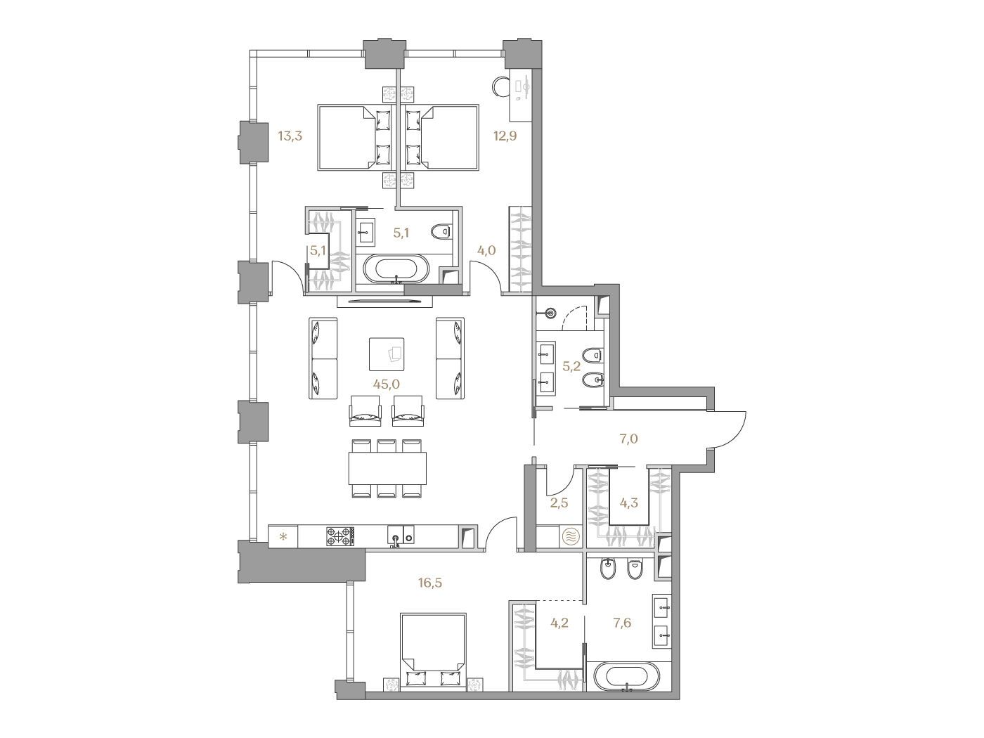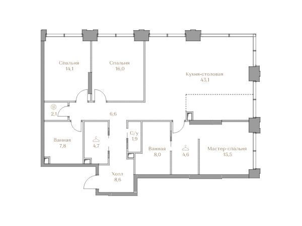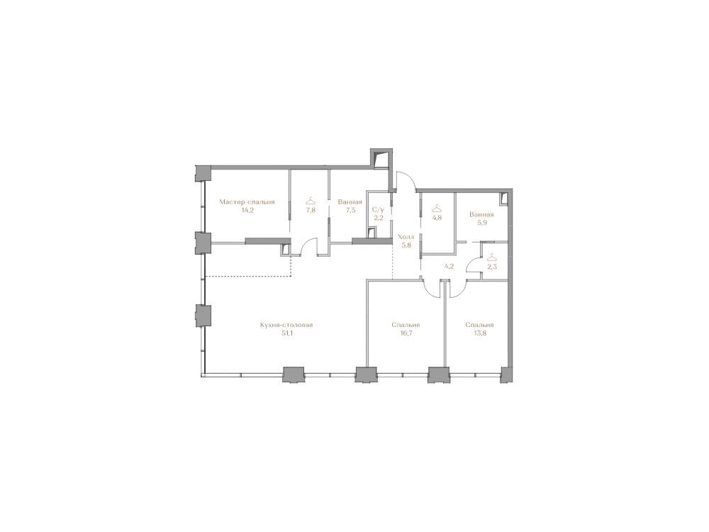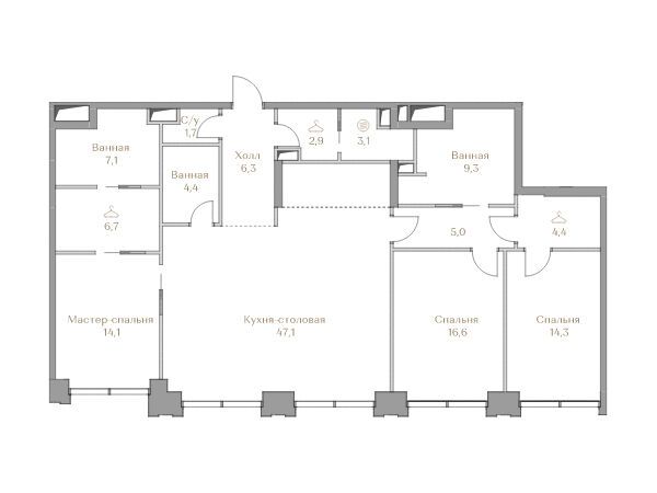 3-комнатная квартира, 134.90 м², 16 из 18 эт.