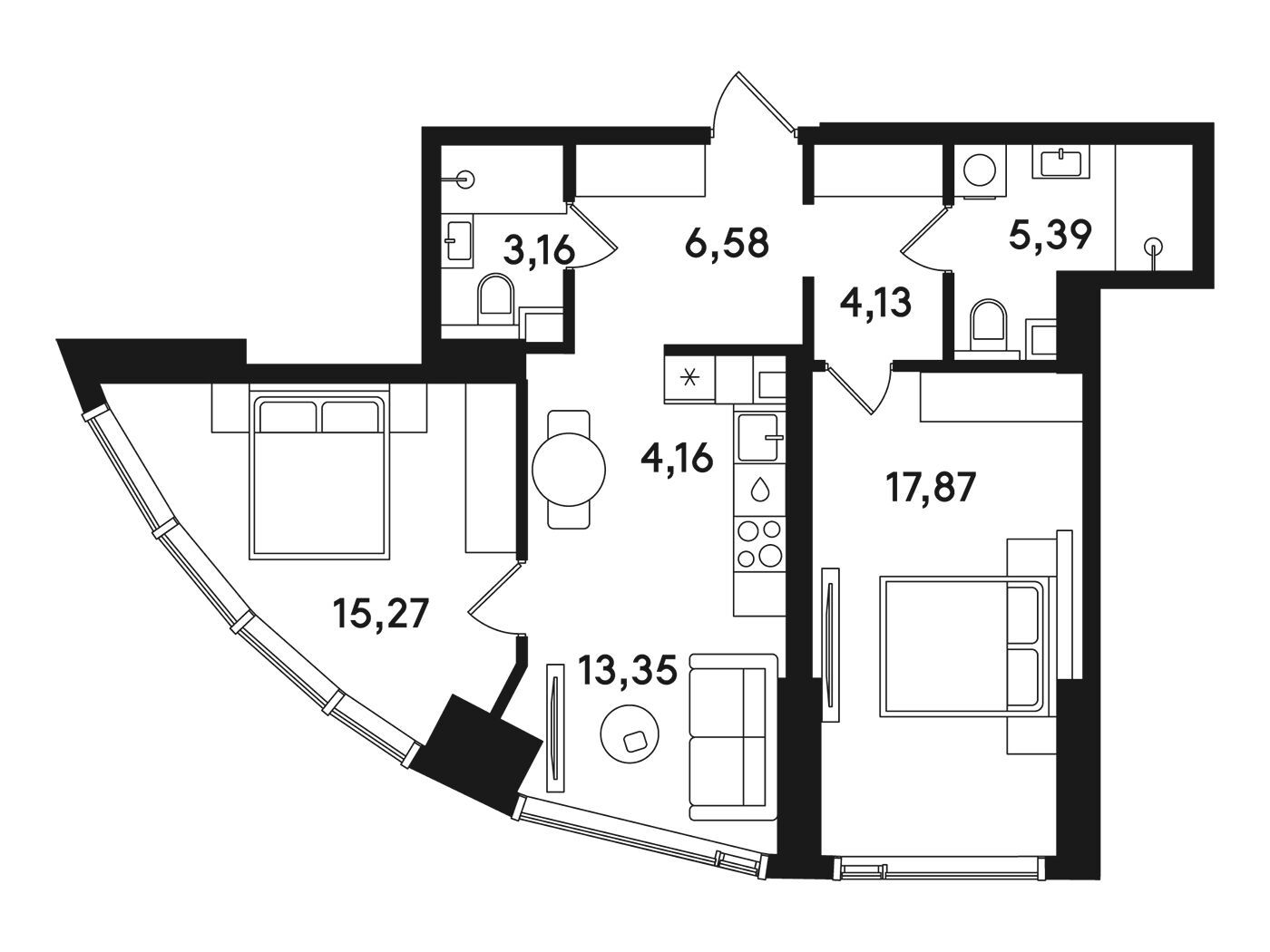2-комнатная квартира, 70.07 м², 5 из 41 эт.