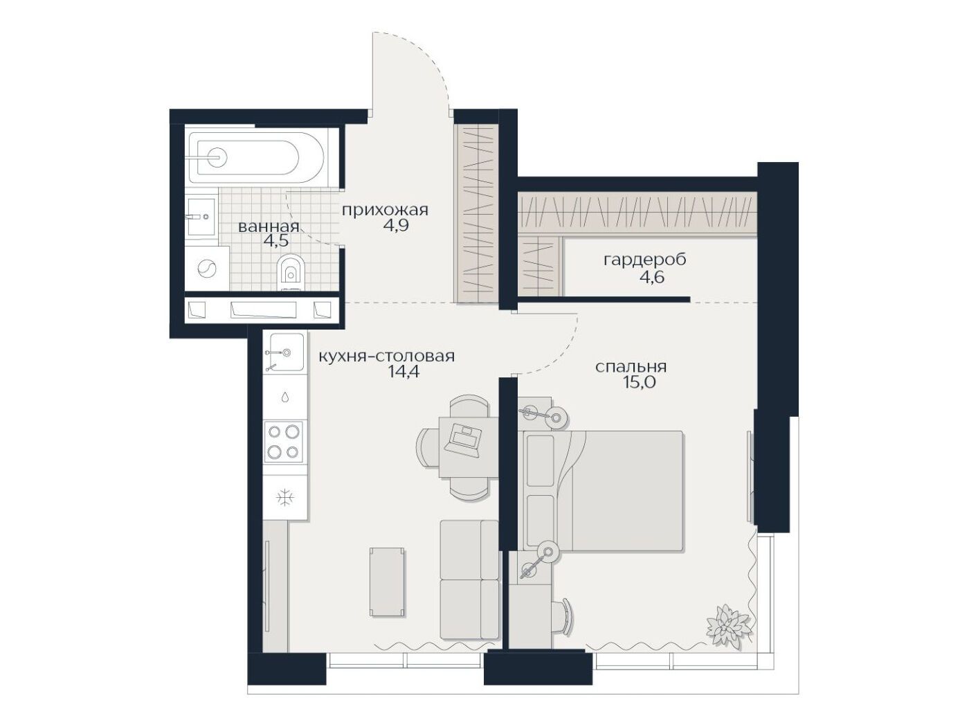 1-комнатная квартира, 42.50 м², 5 из 28 эт.