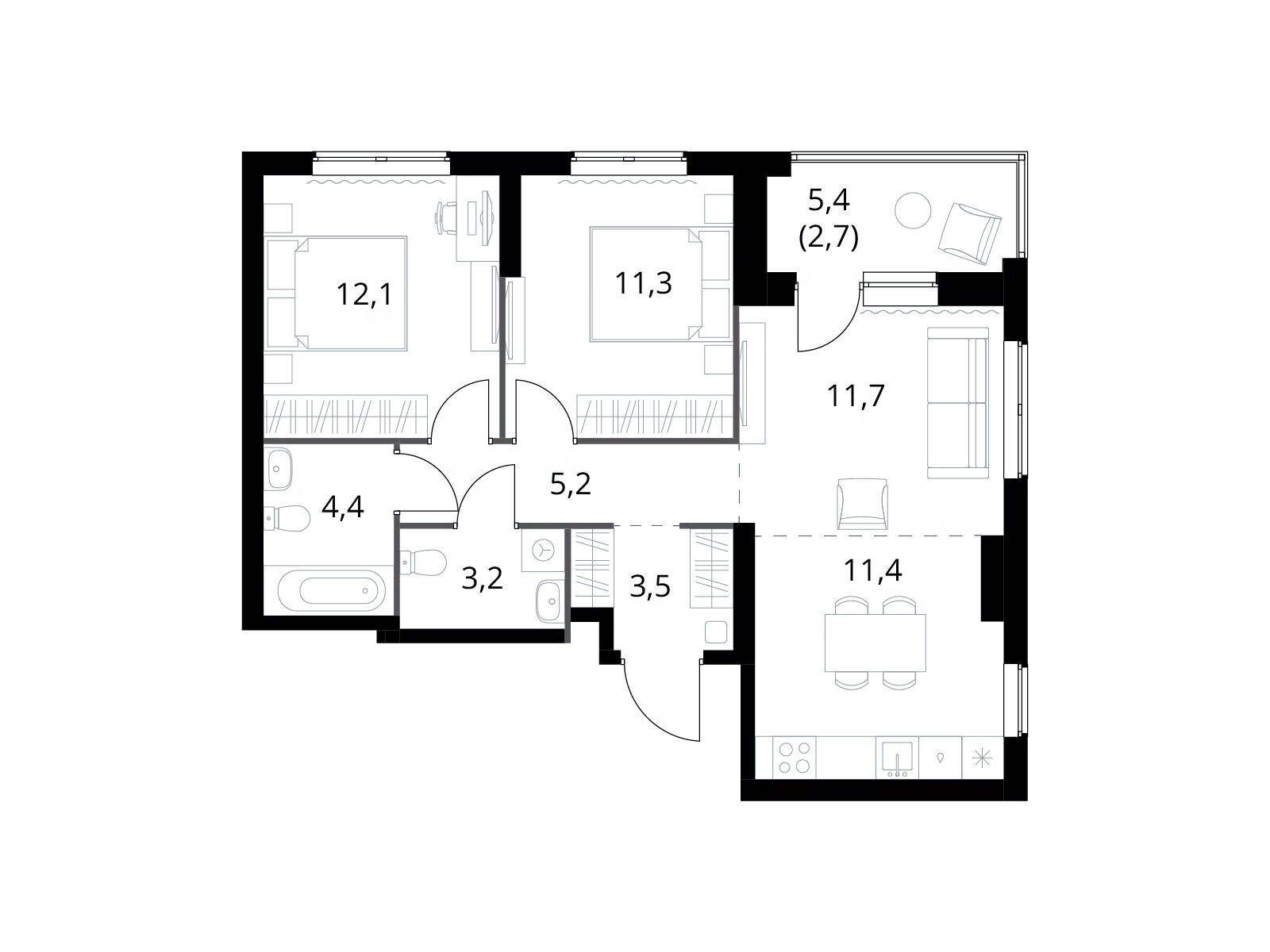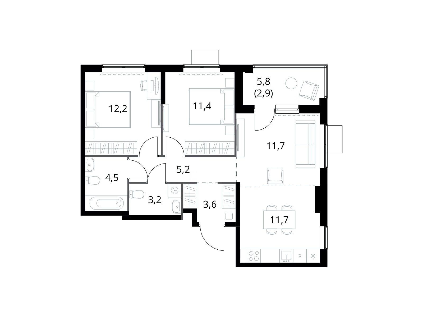 3-комнатная квартира, 89.30 м², 8 из 23 эт.