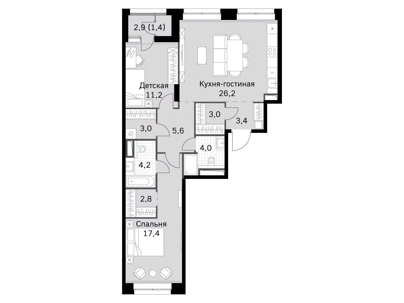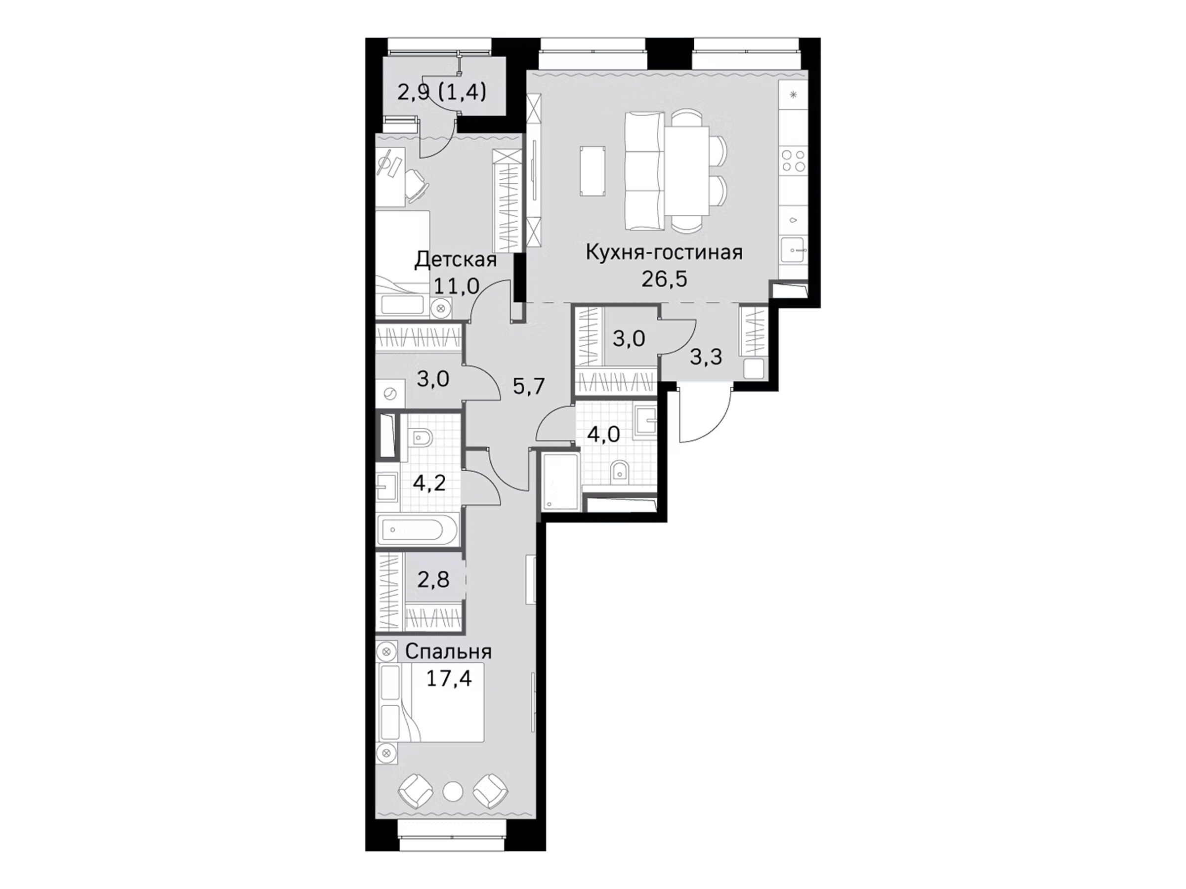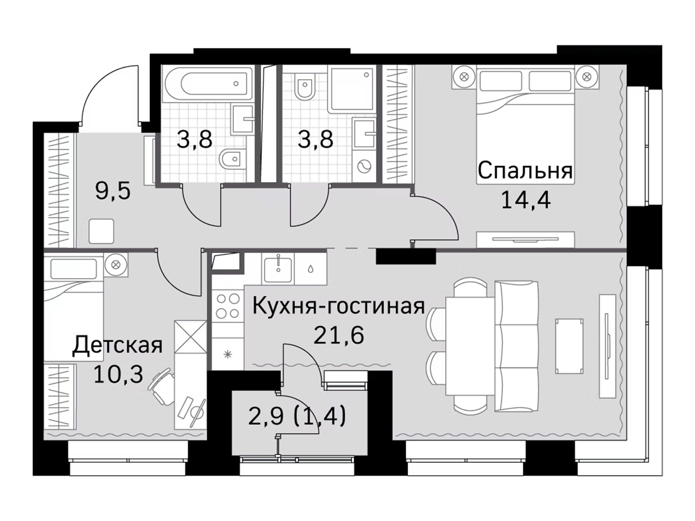 3-комнатная квартира, 82.30 м², 20 из 44 эт.