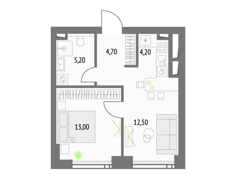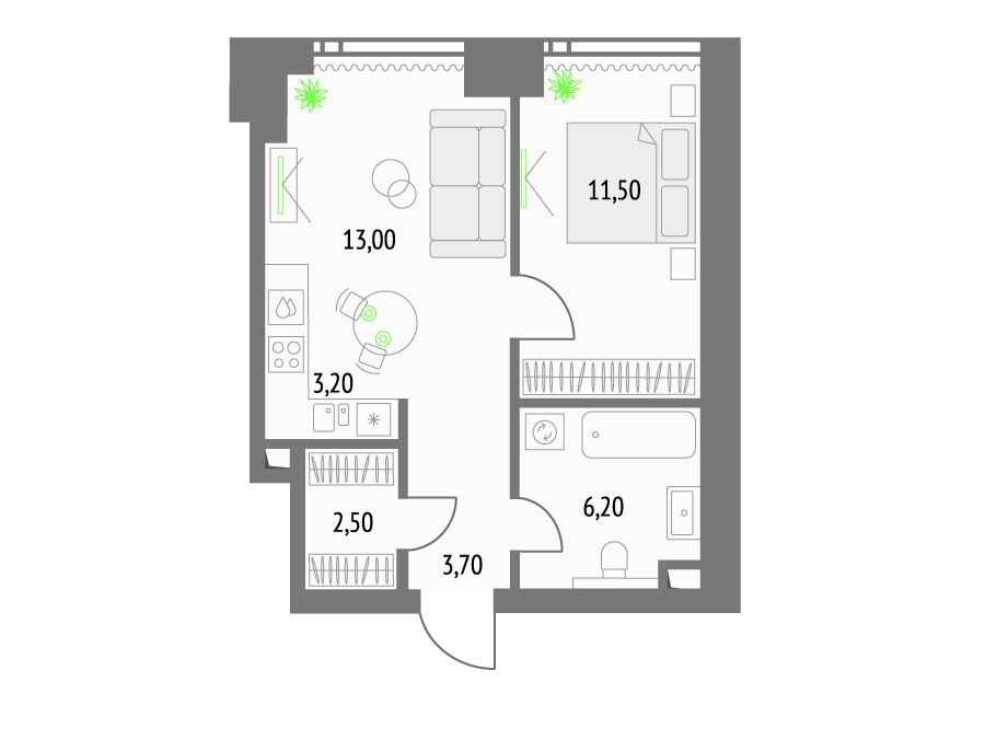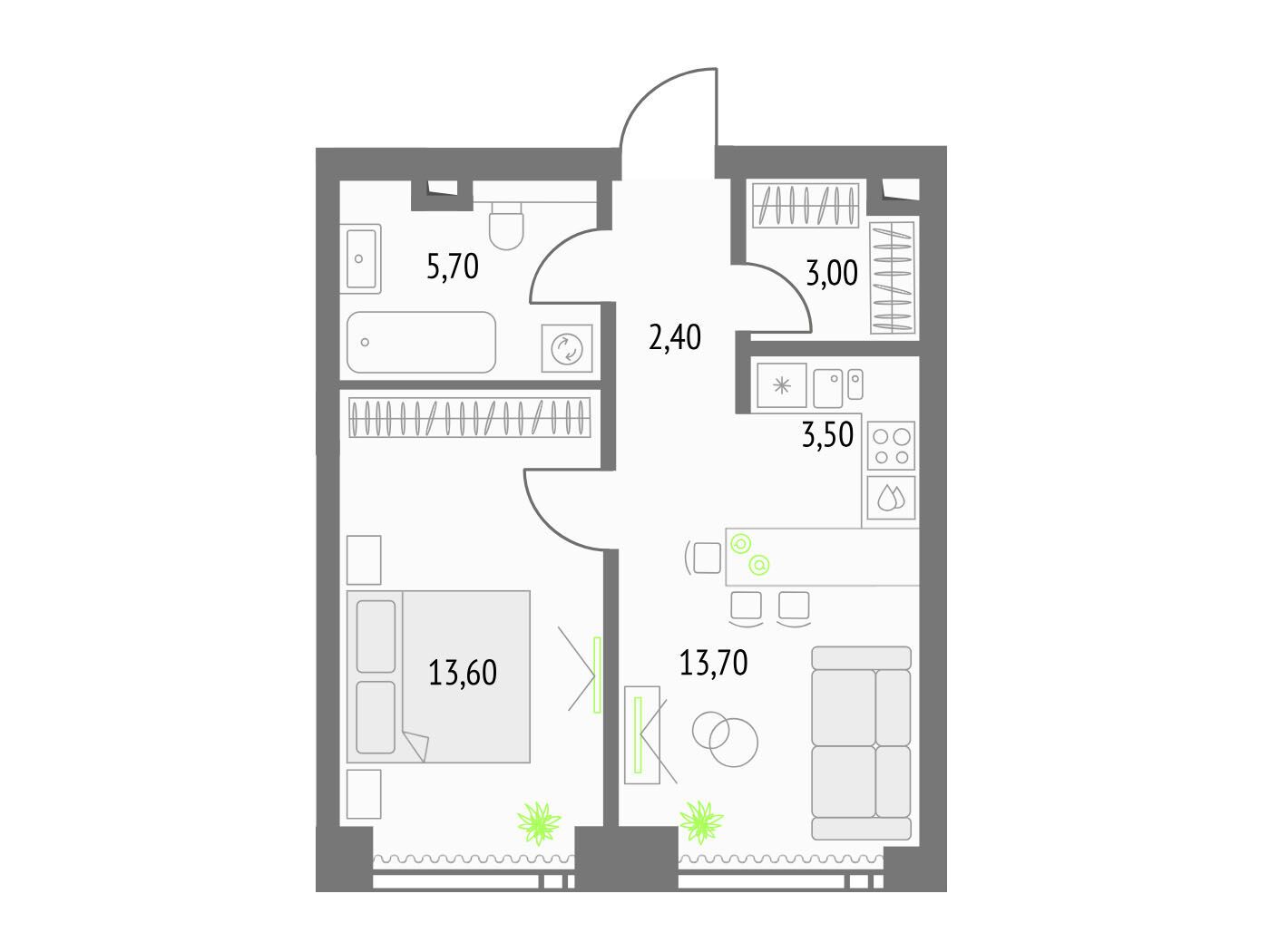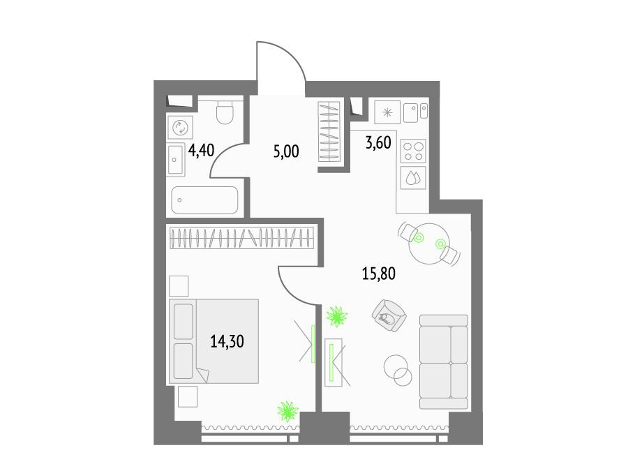 1-комнатная квартира, 40.40 м², 4 из 54 эт.