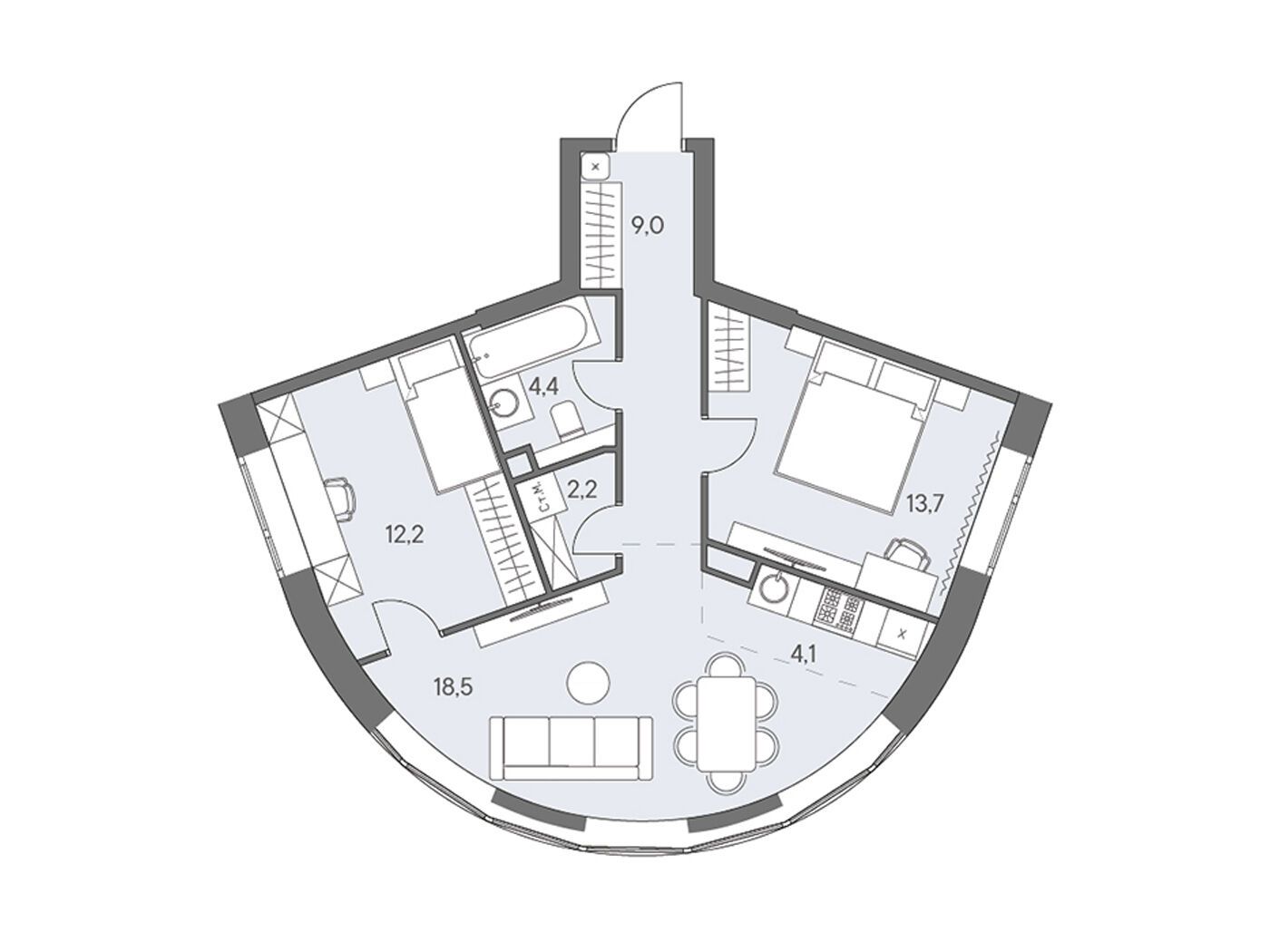 3-комнатная квартира, 64.60 м², 22 из 30 эт.