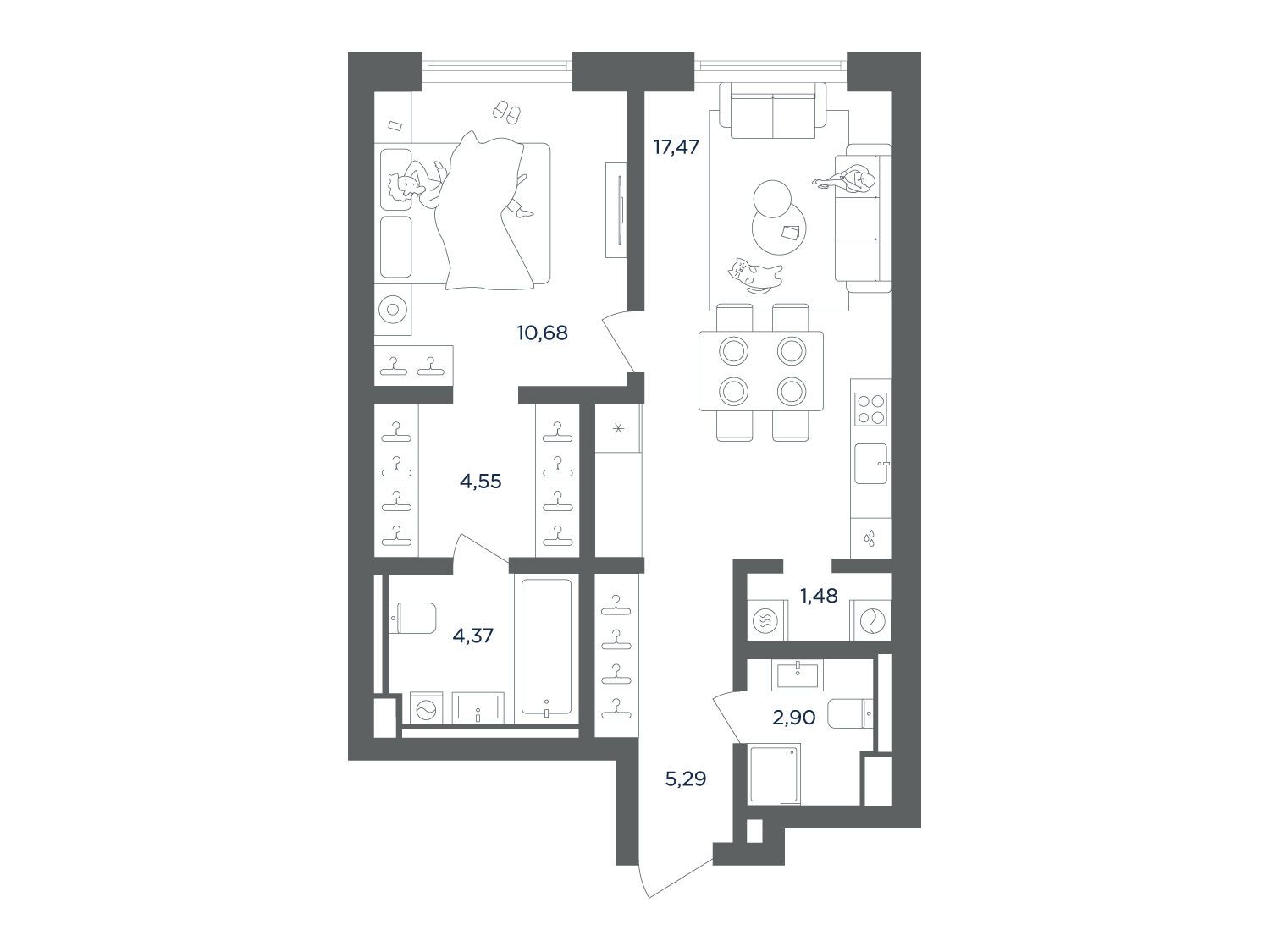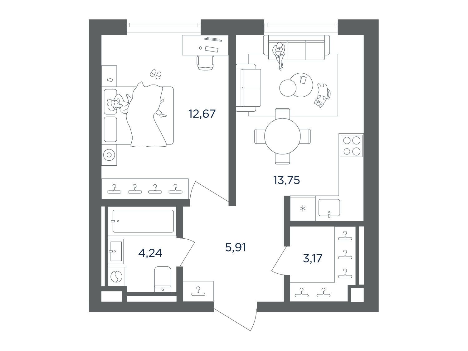 1-комнатная квартира, 39.82 м², 28 из 45 эт.
