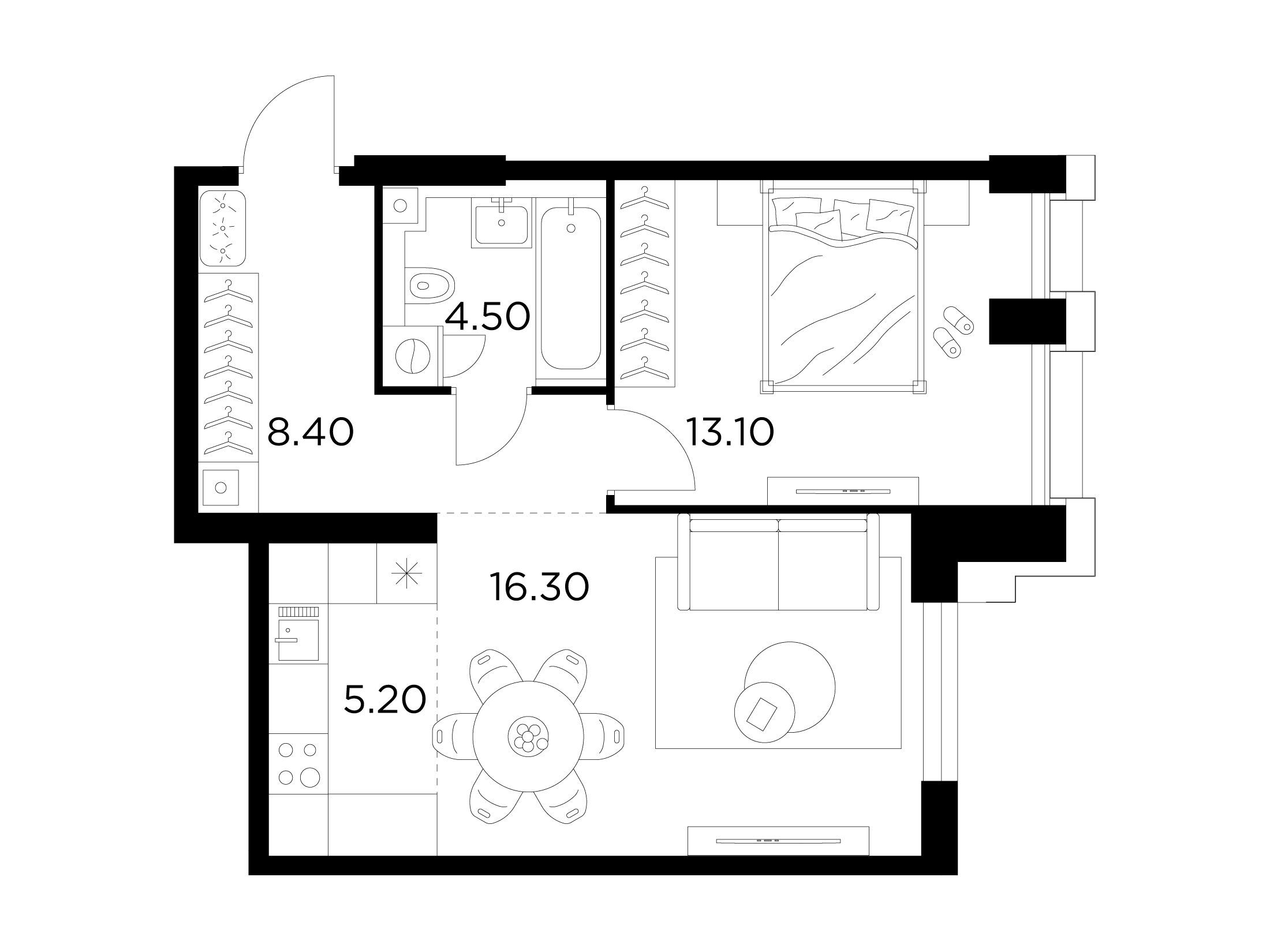 2-комнатная квартира, 40.60 м², 8 из 10 эт.
