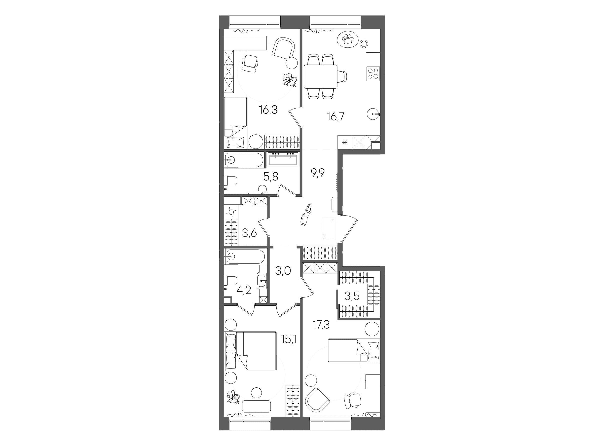 3-комнатная квартира, 105.90 м², 8 из 14 эт.