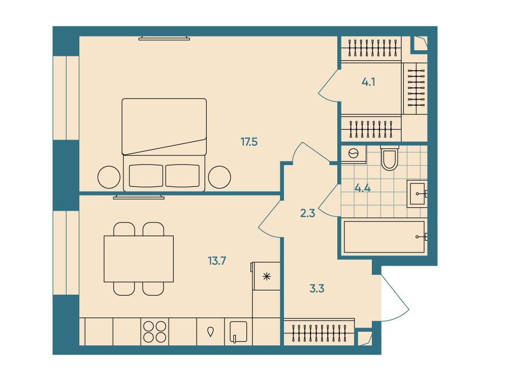 1-комнатная квартира, 41.90 м², 24 из 27 эт.