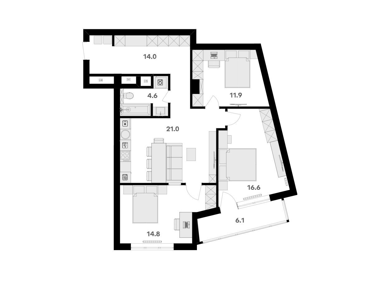 4-комнатная квартира, 130.60 м², 14 из 20 эт.