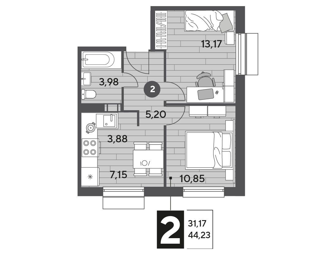 2-комнатная квартира, 46.44 м², 9 из 12 эт.