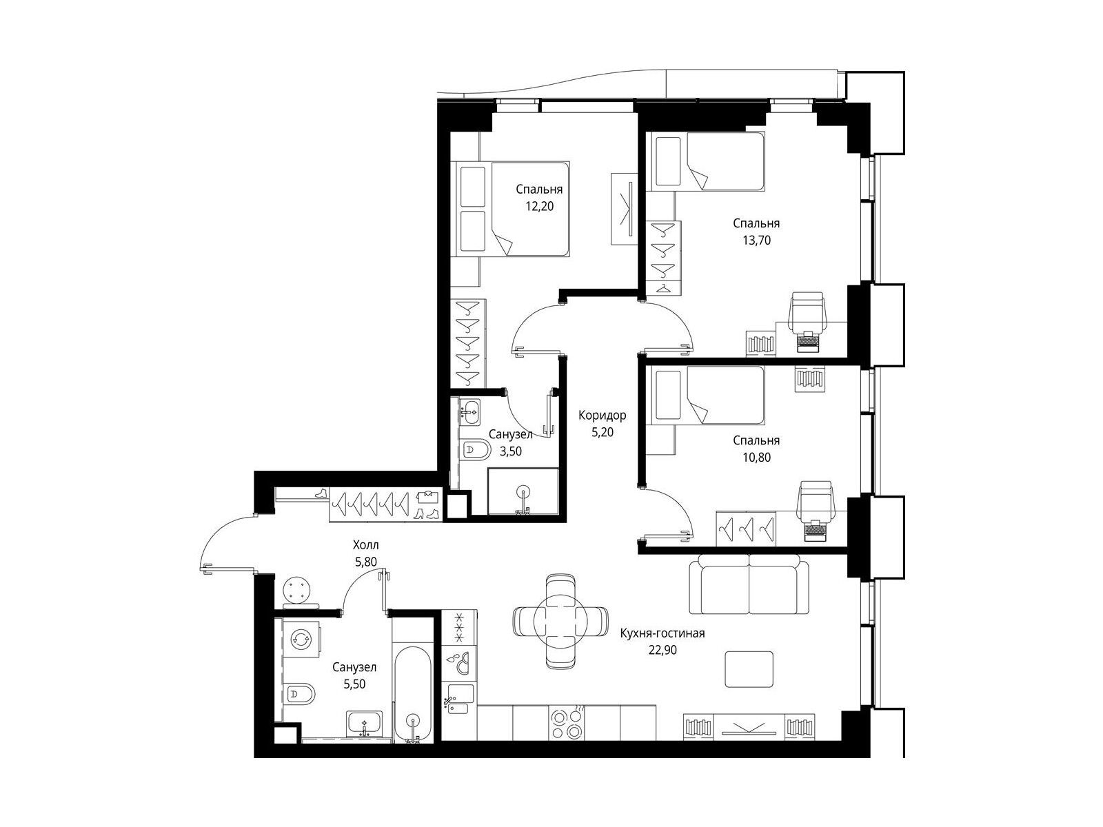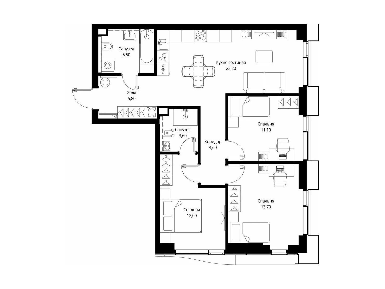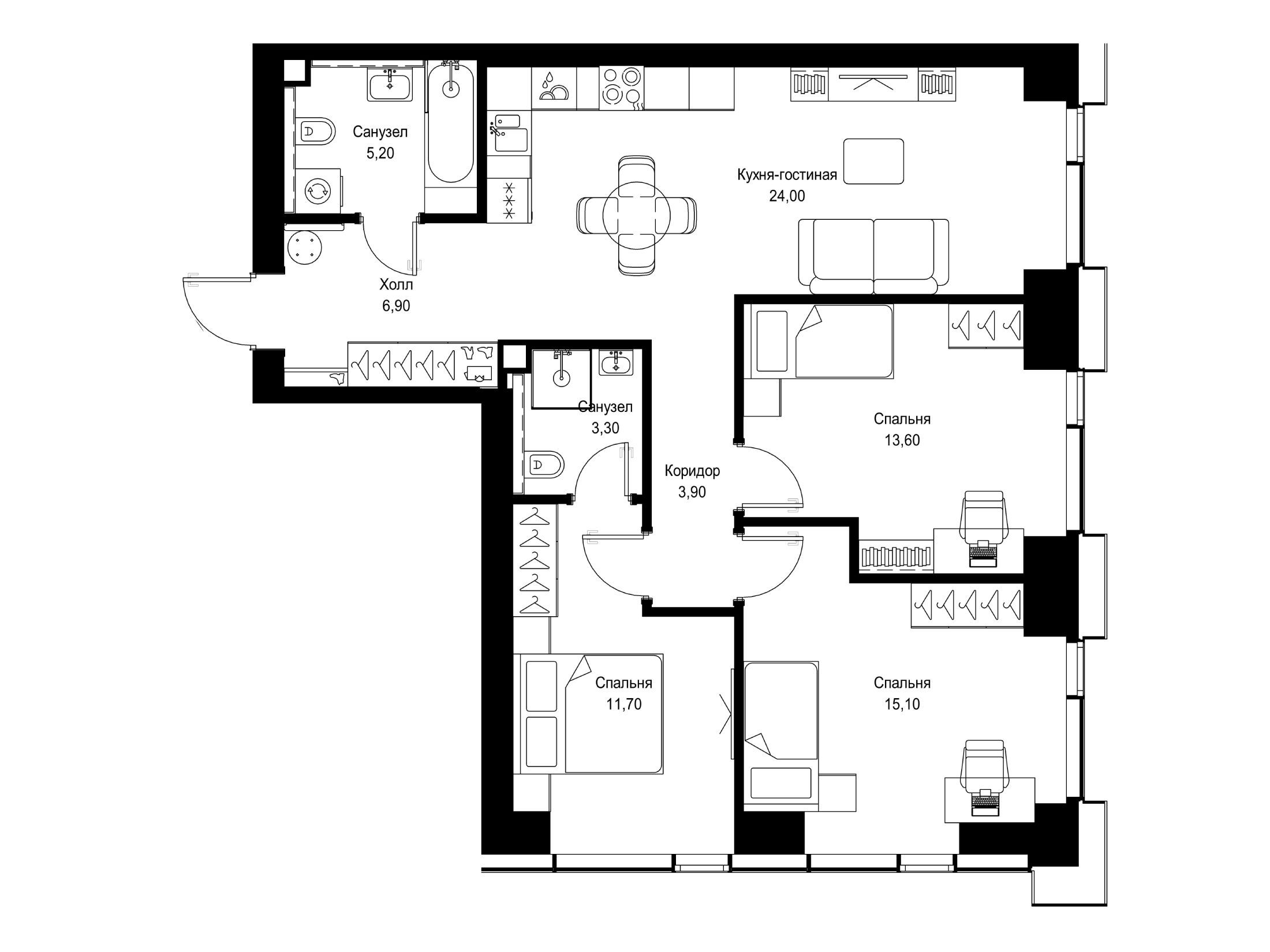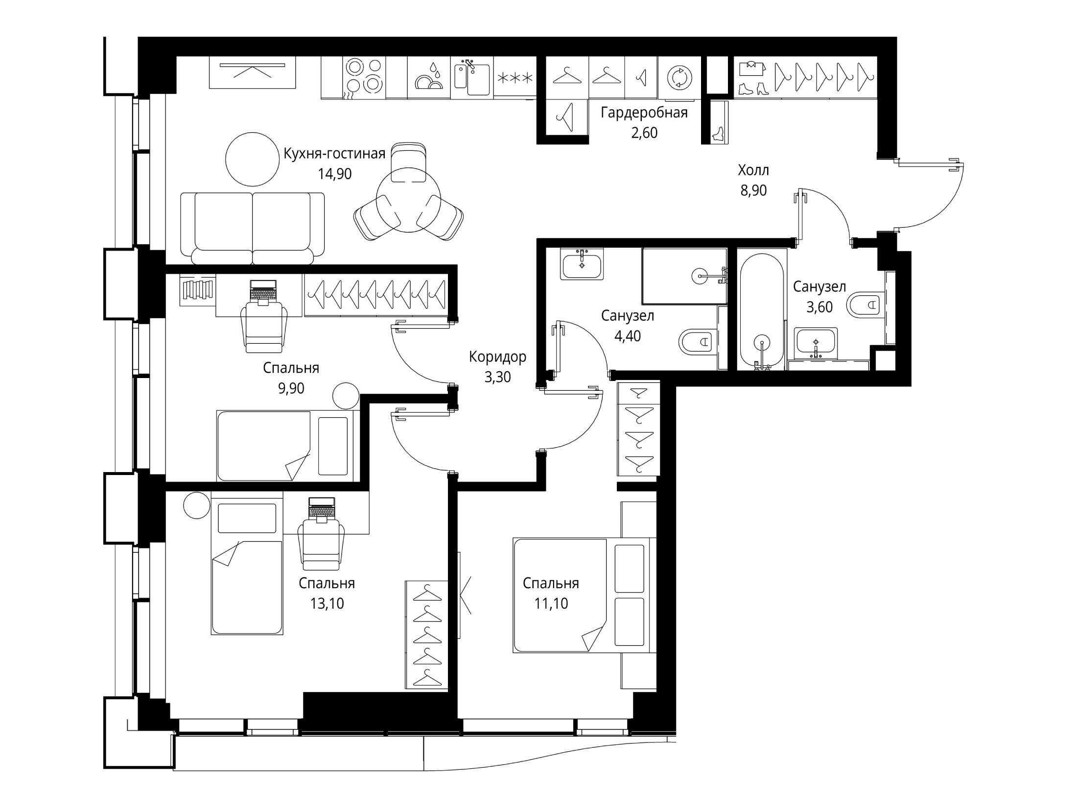3-комнатная квартира, 73.90 м², 31 из 48 эт.