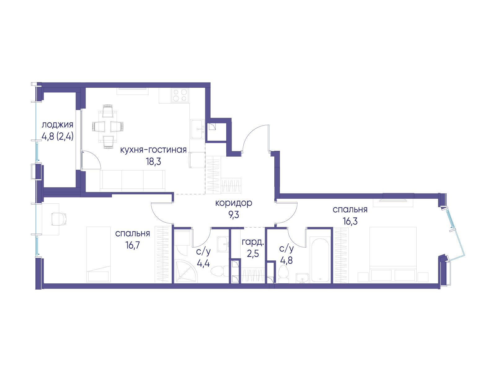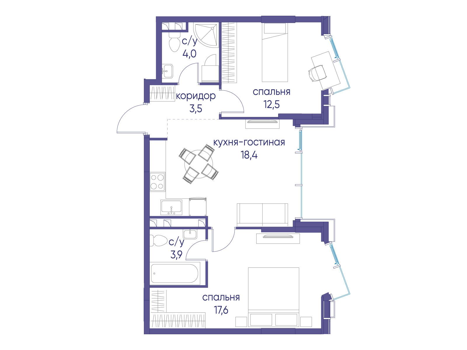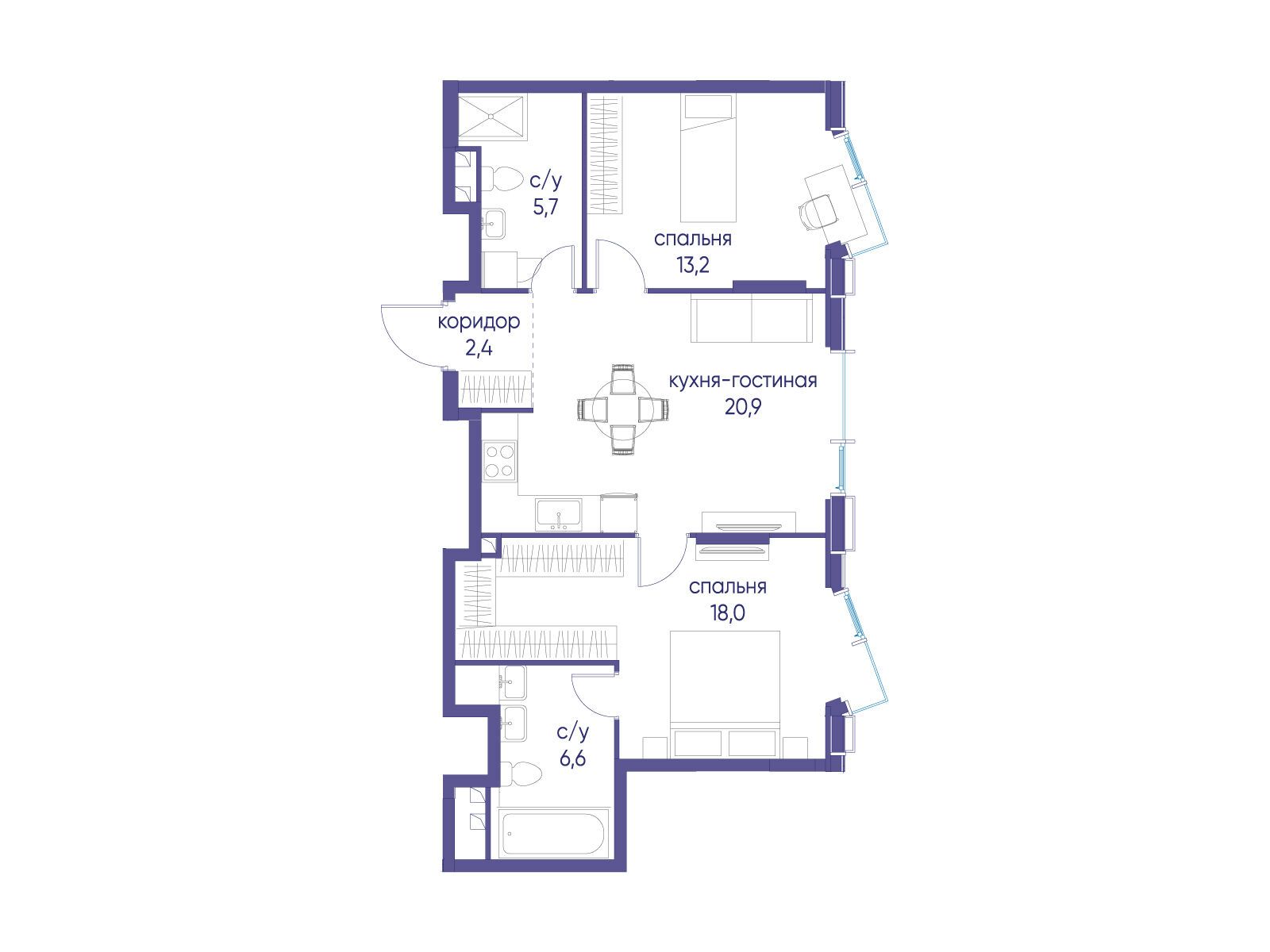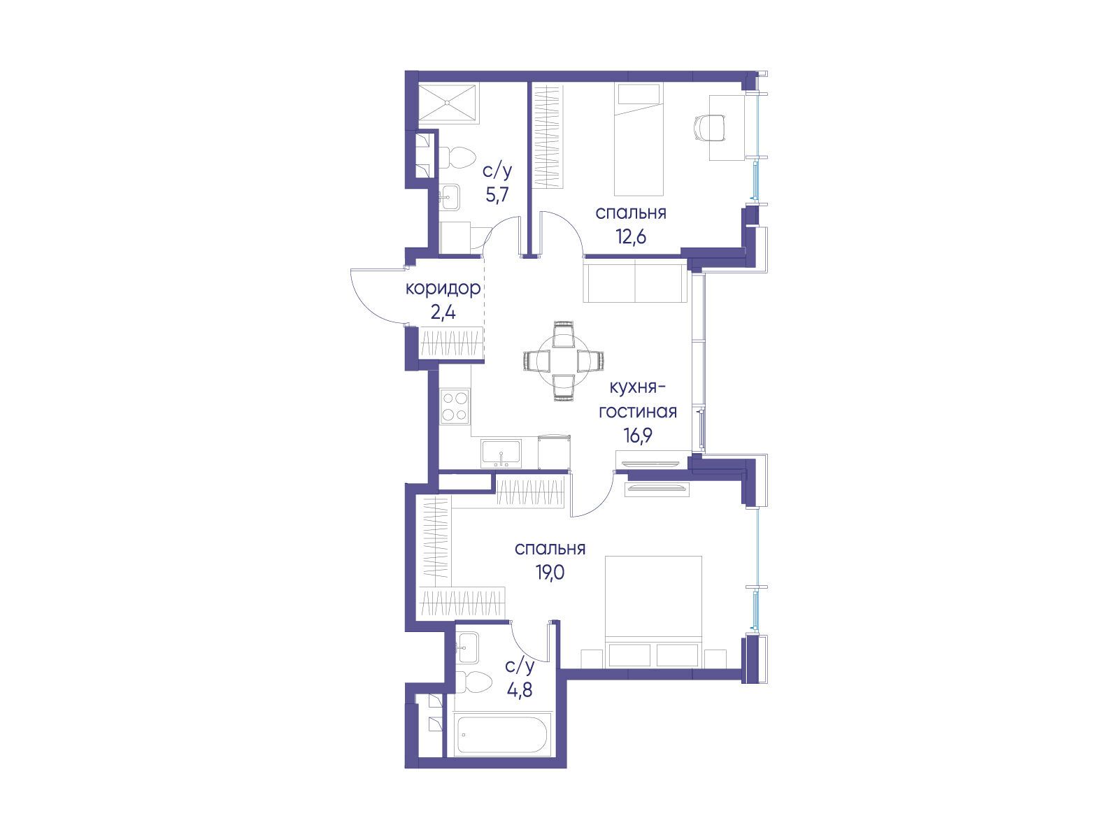 2-комнатная квартира, 71.40 м², 21 из 38 эт.