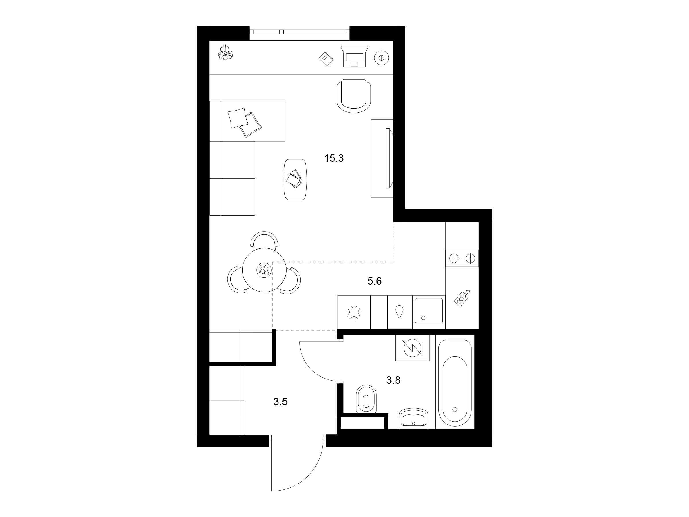 Студия, 28.20 м²