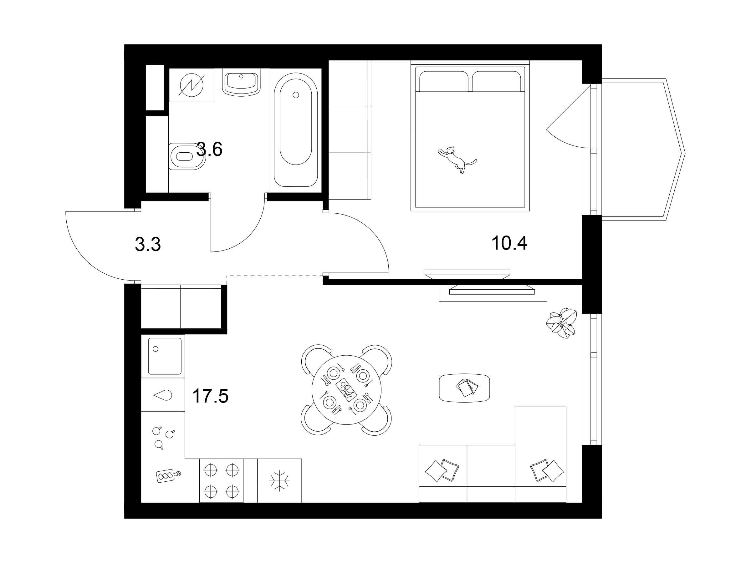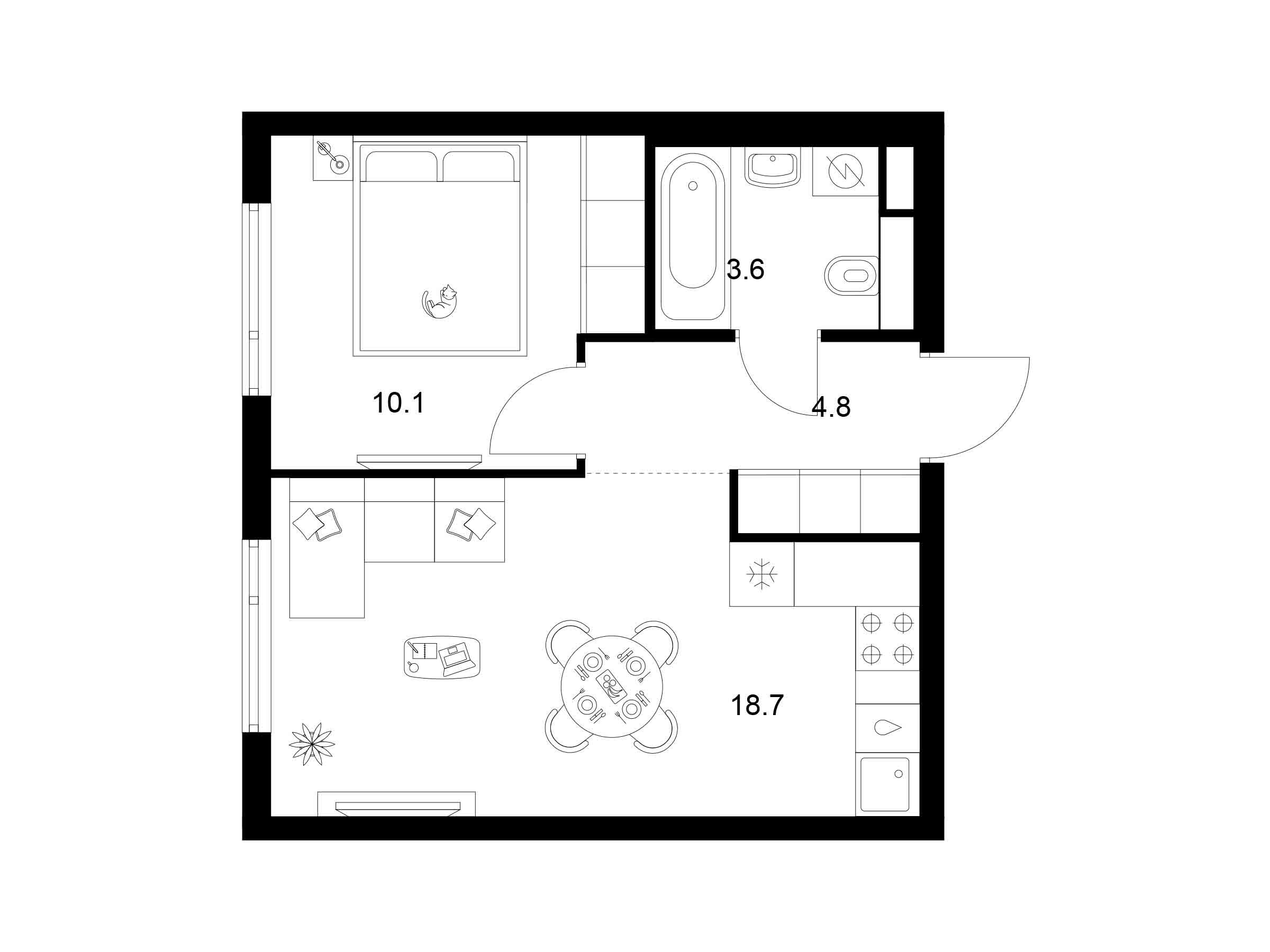 1-комнатная квартира, 38.60 м², 16 из 16 эт.