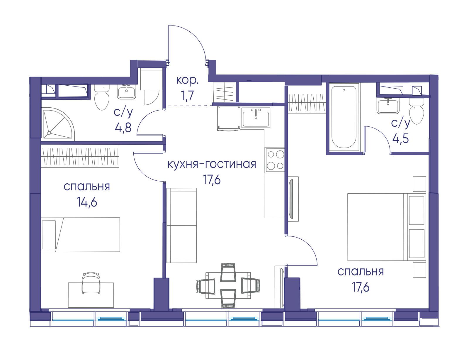 2-комнатная квартира, 66.80 м², 2 из 38 эт.