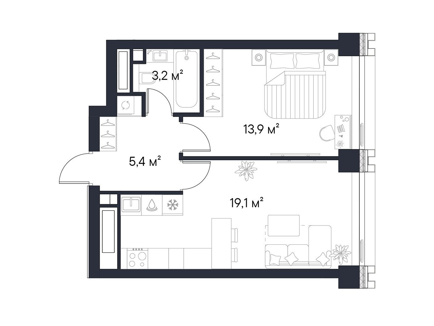 1-комнатная квартира, 41.70 м², 38 из 49 эт.