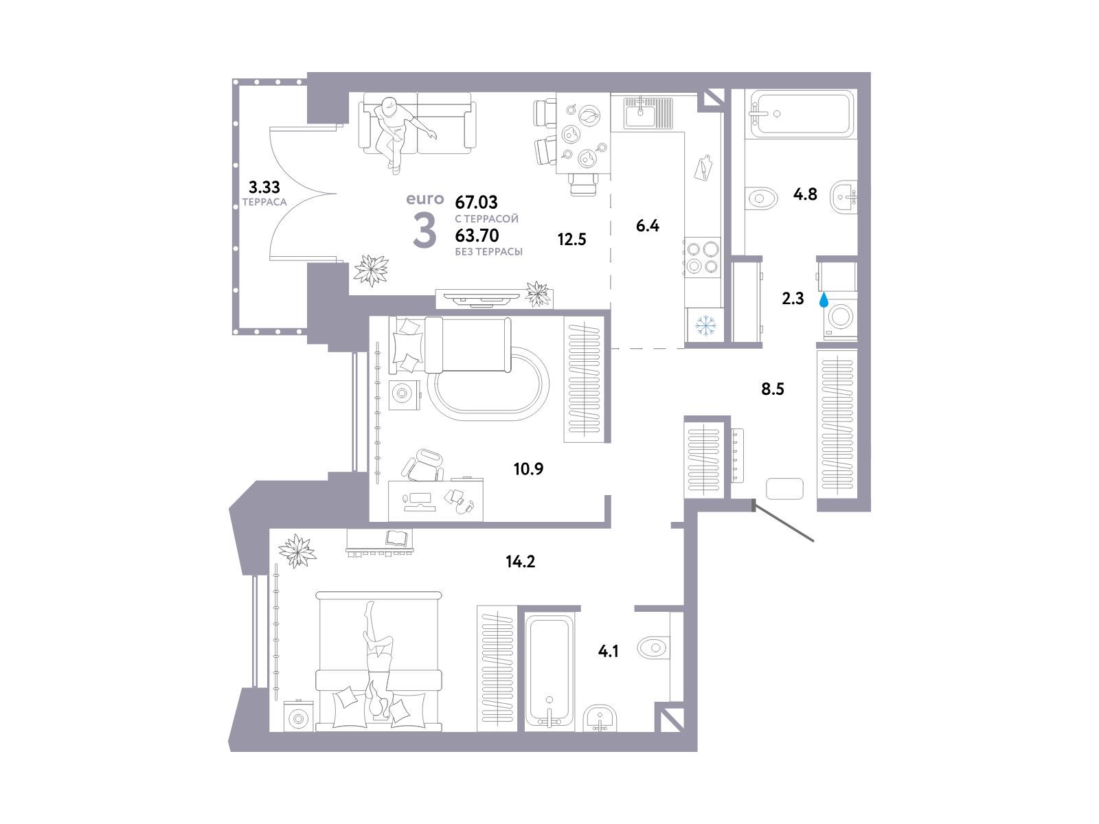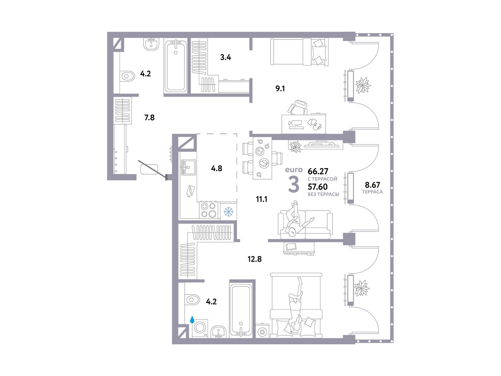 3-комнатная квартира, 70.80 м², 28 из 30 эт.