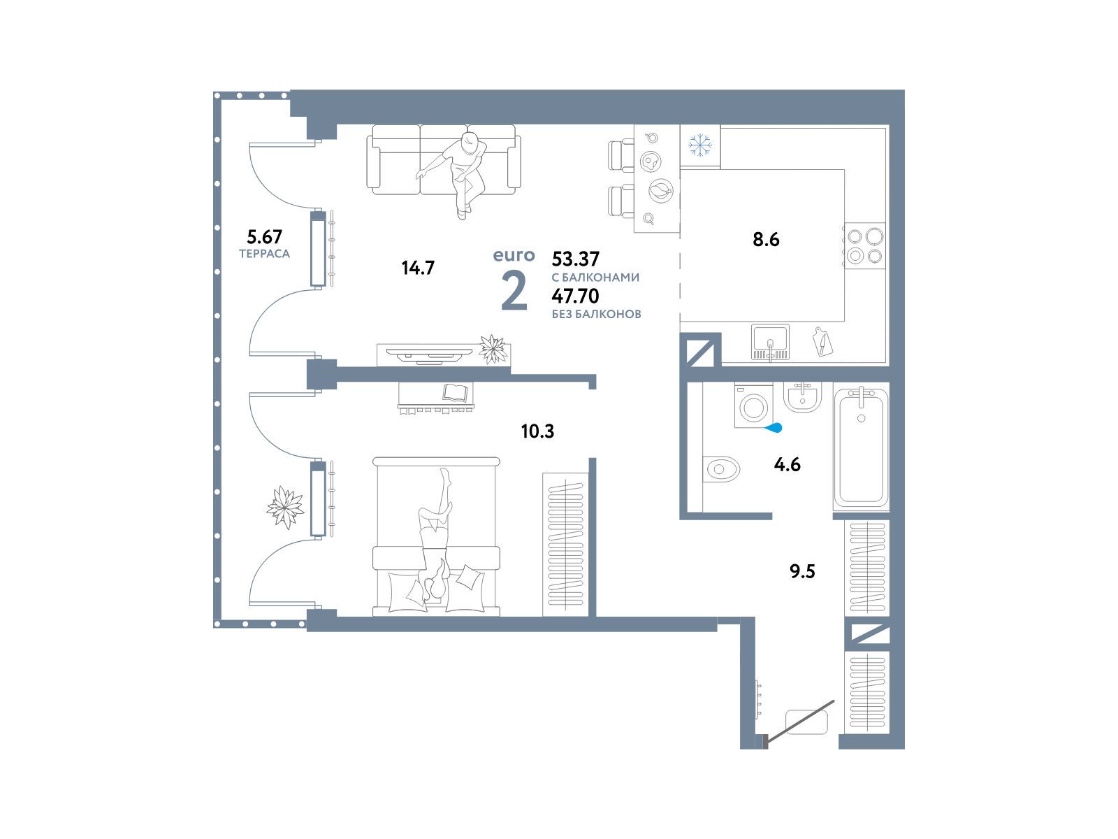 2-комнатная квартира, 49.80 м², 29 из 30 эт.