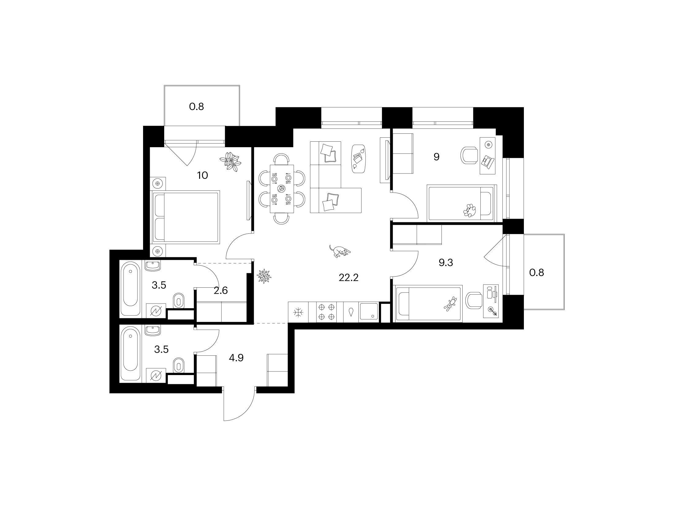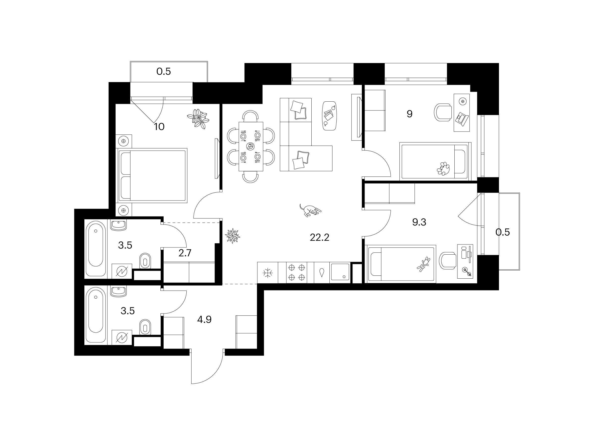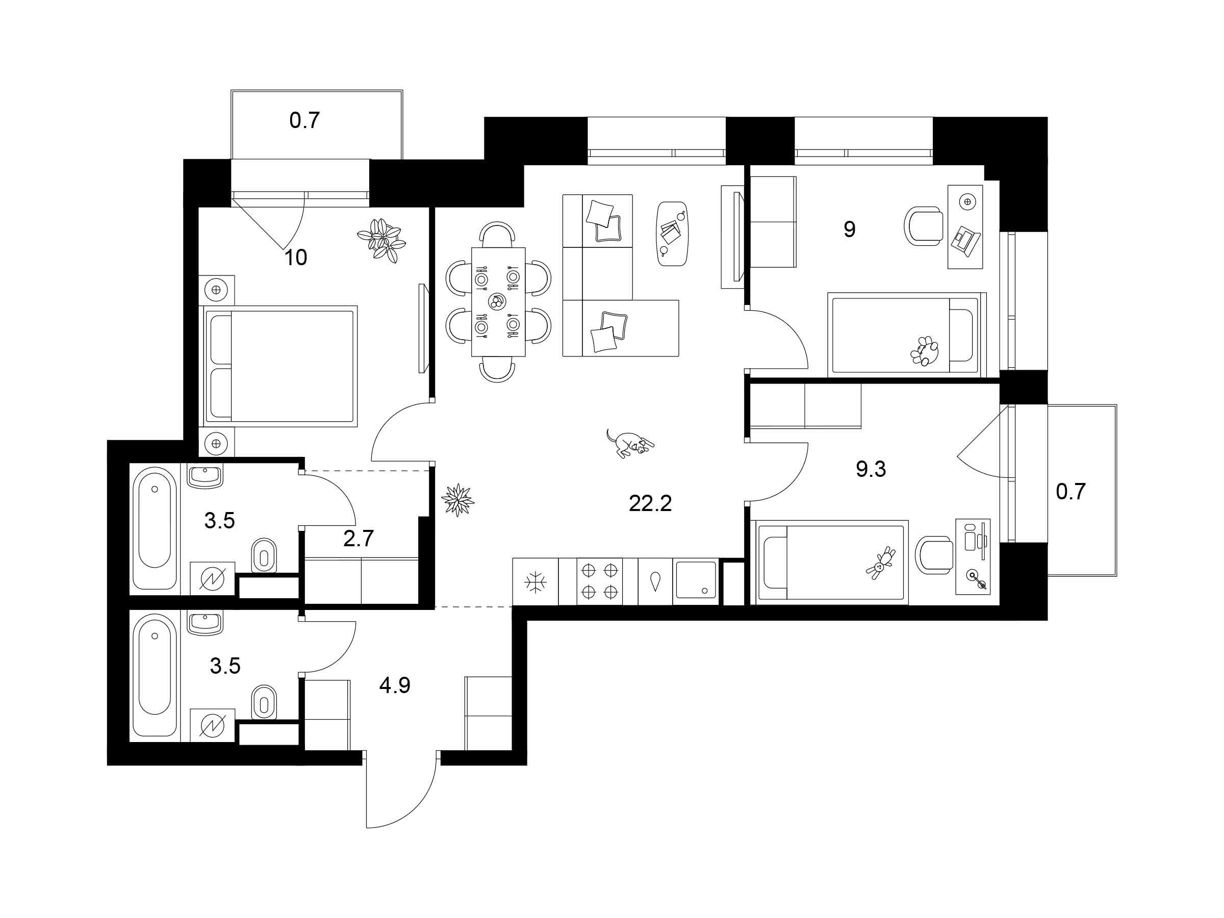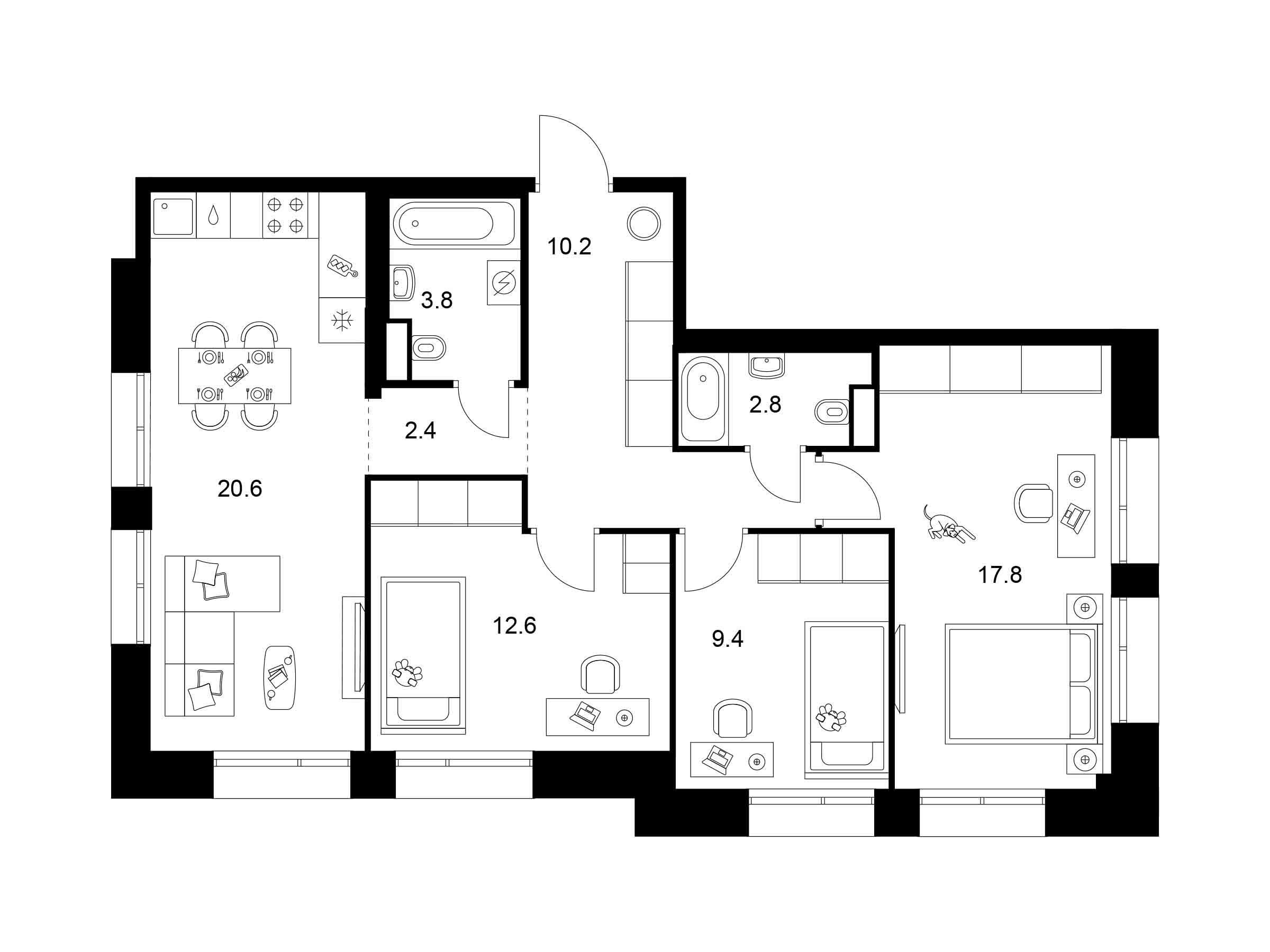 3-комнатная квартира, 65.80 м², 2 из 23 эт.