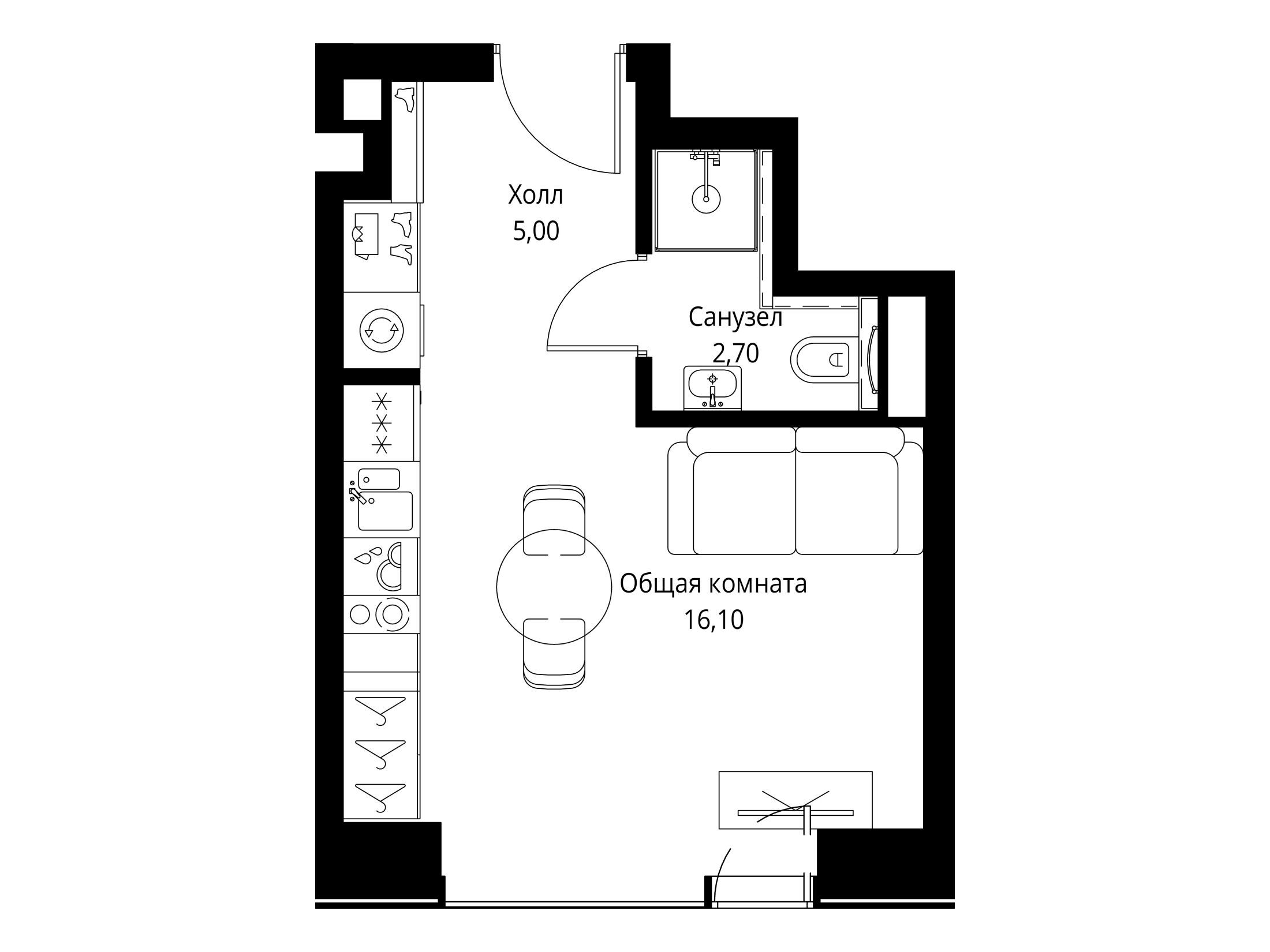 Студия, 20.70 м²