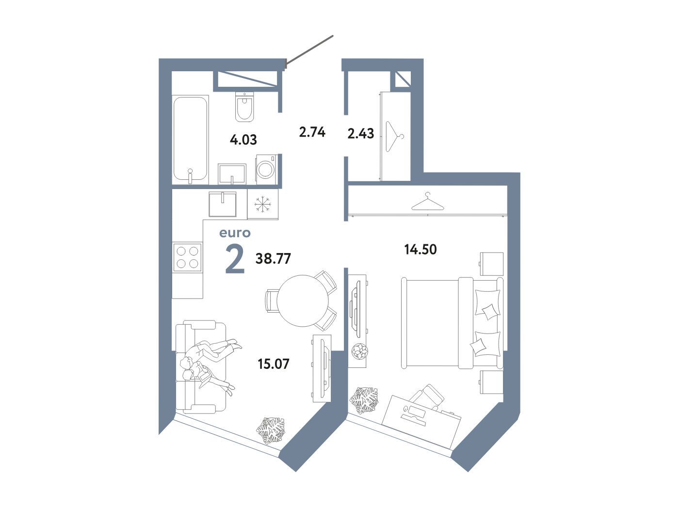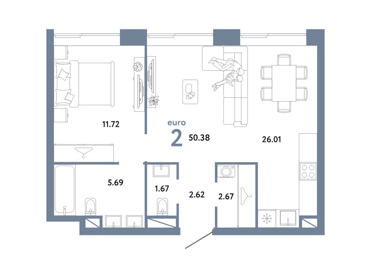 2-комнатная квартира, 32.03 м², 2 из 27 эт.
