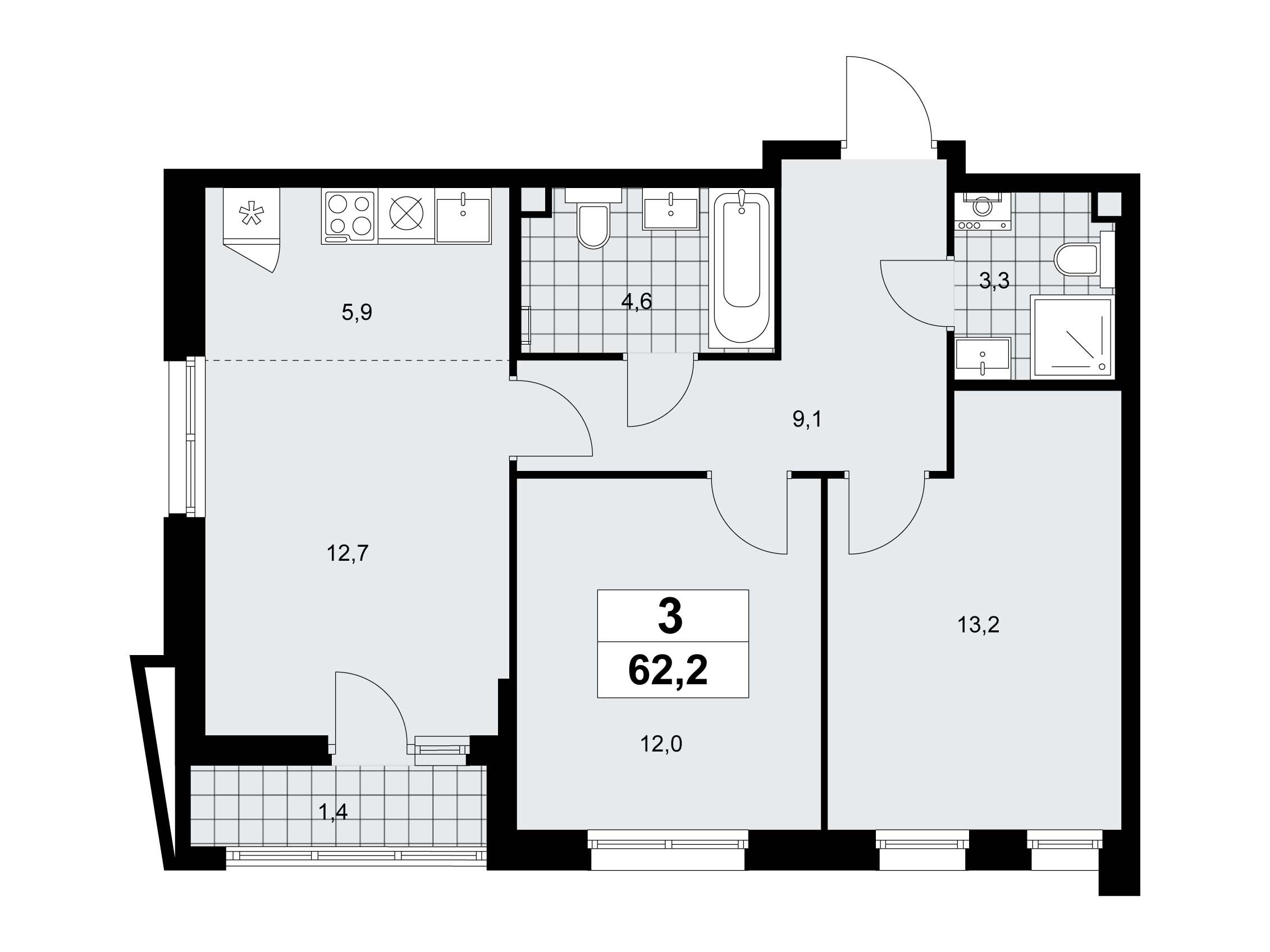 3-комнатная квартира, 72.30 м², 15 из 17 эт.